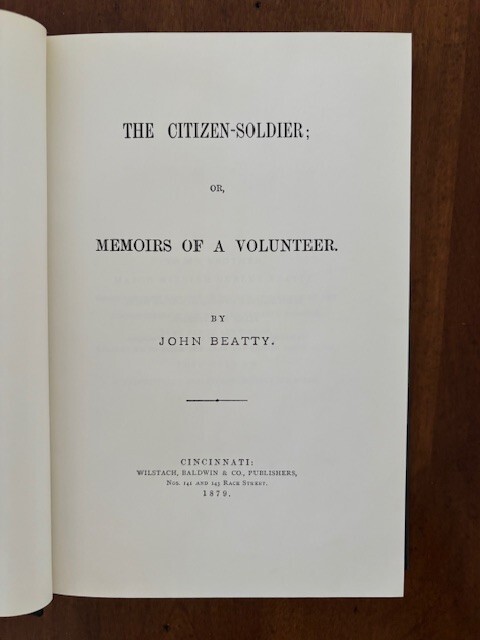 John Beatty. The Citizen-Soldier; Or, Memoirs of a Volunteer. Alexandria, VA: Time-Life Books, 1983 (1879). A volume in the Collector's Library of the Civil War. Bound in full leather with a red silk bookmark. A.e.g. Leaflet and loose bookplate accompany the book. In fine, unread condition.
