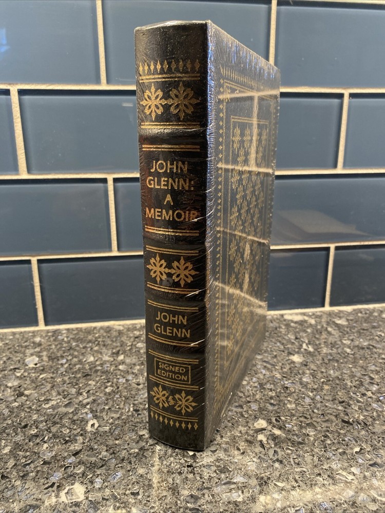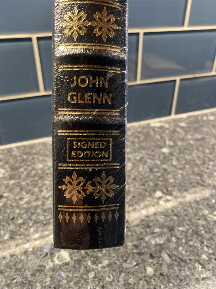 John Glenn: A Memoir John Glenn with Nick Taylor Easton Press Signed First Edition 1999 422-page Leather Bound COA & Easton Note card laid in Full Leather - 22K Gold Page Edges and Graphics - Sewn Binding - Acid Free Paper - Raised Bands on Spine - Moire End Papers - Sewn in Ribbon Page Marker 3500 printed; new, never opened Purchase for pre-Christmas delivery _________________________________________________ He was the first American astronaut to orbit the Earth. Nearly four decades later, as the world's oldest astronaut, his courage riveted a nation. But these two historic events only bracket a life that covers the sweep of an extraordinary century. In this engrossing book, John Glenn tells the story of his unique life--one lived at the center of a momentous time in history by a man who helped shape that history. He is the kind of hero who resists being called a hero. And yet his exploits in the service of his country, his dedication to family and friends, and his rock-ribbed traditional values have made this small-town boy from the Midwest a true American icon. John Glenn's autobiography spans the seminal events of the twentieth century. It is a story that begins with his childhood in New Concord, Ohio, in the aftermath of World War I. It was there that he learned the importance of family, community, and patriotism. Glenn saw firsthand the ravages of the Depression and learned that determination, hard work, and teamwork could overcome any adversity. These were the values he carried with him as a Marine fighter pilot during World War II and into the skies over Korea, for which he would be decorated for his courage, dedication, and sacrifice. Glenn flew missions with men he would never forget, from baseball great Ted Williams to little-known heroes who would never return to their families. Always a gifted flier, it was during the war that he contemplated the unlimited possibilities of aviation and its next frontiers: speed and space. John Glenn takes us into the cockpits of the experimental planes and spacecraft he flew to experience the pulse-pounding excitement of the early days of jet aviation, including his record-setting transcontinental flight in an F8U Crusader in 1957, and then on to his selection for the Project Mercury program in 1959. We see the early days of NASA, where he first served as a backup pilot for astronauts Alan Shepard and Gus Grissom and helped refine some of the initial cockpit and control designs for the Apollo program. In 1962 Glenn piloted the Mercury-Atlas 6 Friendship 7 spacecraft on the first manned orbital mission of the United States. Then came several years in international business, followed by a twenty-four-year career as a U.S. senator--and in 1998 a return to space for his remarkable Discovery mission at the age of seventy-seven. This extraordinary book captures the unique alchemy that brings a man to the forefront of his time. Married to a woman he first met when they were both toddlers, known for his integrity, common sense, and leadership in the Senate, John Glenn tells a story that we must hear. For this narrative of steadfastness, devotion, courage, and honor is both a great adventure tale and a source of powerful inspiration for an age that needs John Glenn's values more than ever before.