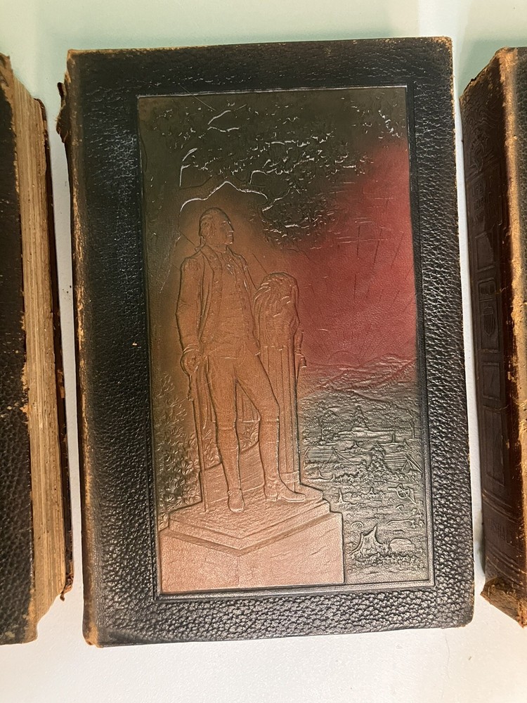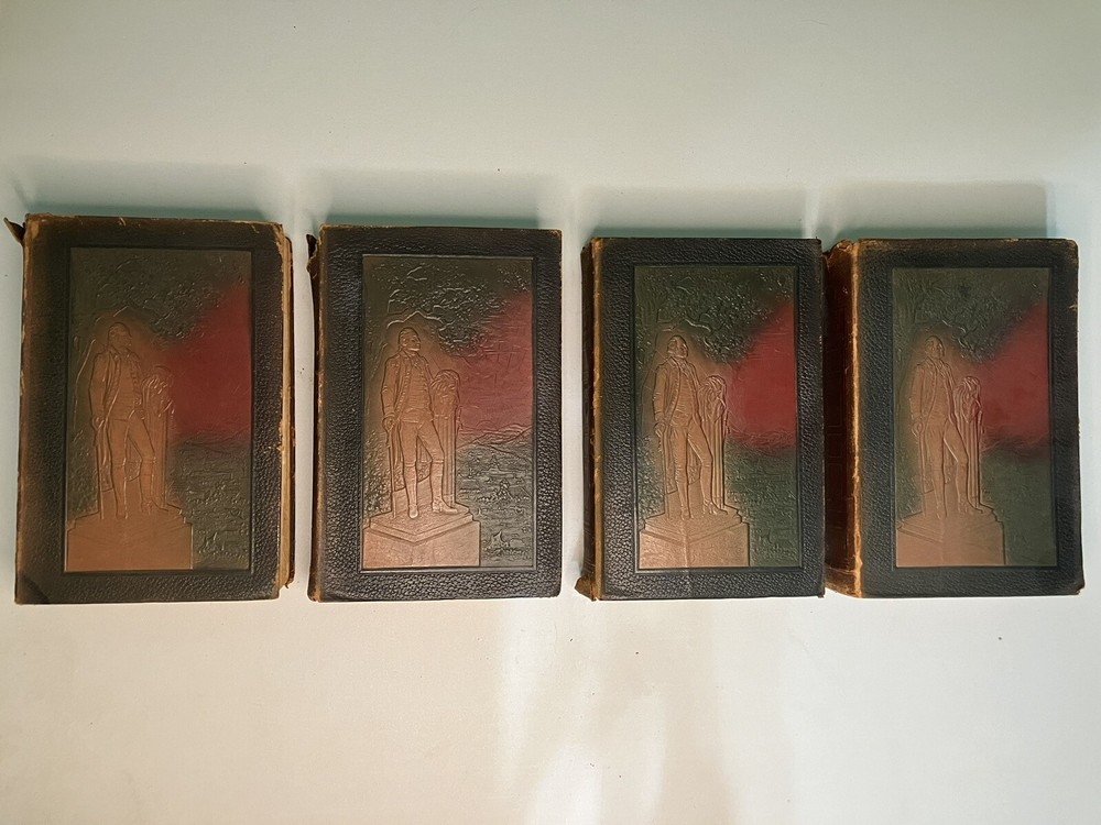 This set contains 4 of what I believe is a 5 volume set of books. This set is sold as is. See photos for details on condition. Most pages are in good condition, but there are some pages with small tea...