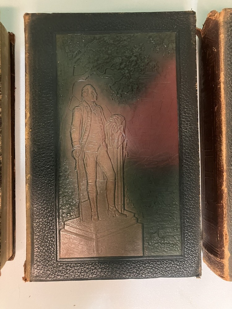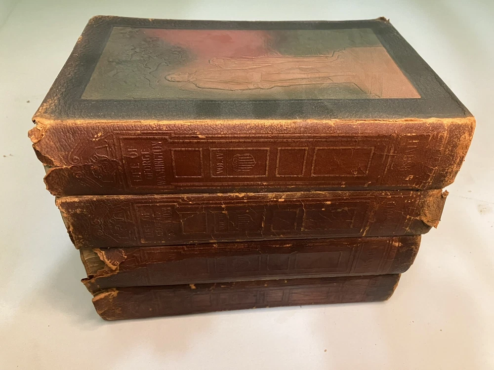 This set contains 4 of what I believe is a 5 volume set of books. This set is sold as is. See photos for details on condition. Most pages are in good condition, but there are some pages with small tears as seen in photo.