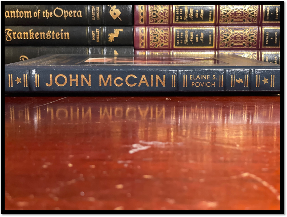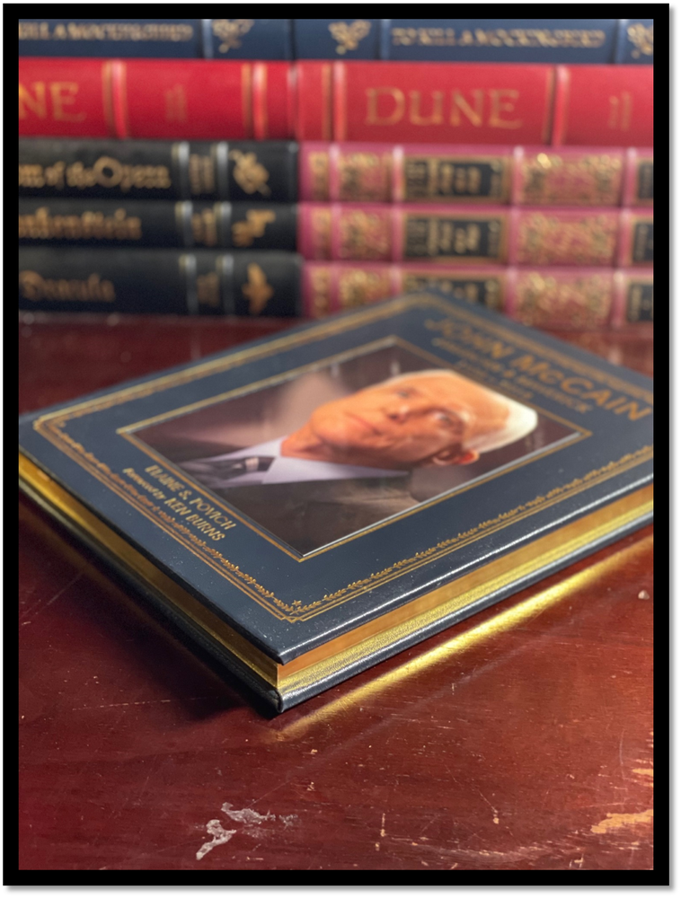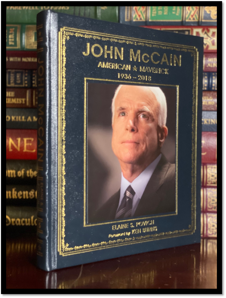 John McCain: American Maverick This is a like new Easton Press leather-bound hardback edition of John McCain: American Maverick. This lavishly illustrated volume—featuring a foreword by award-winning filmmaker Ken Burns—provides a compelling look at the life and career of Senator John McCain from his early years to today, exploring his legacy, his impact, and his place in American history. As of January 3, 2018, John Sidney McCain III, one of the most influential statesmen of our time, will have served as a US senator for 31 years—11,324 days. This unofficial retrospective honors and pays homage to Senator McCain’s astonishing journey—a story of courage, resilience, and leadership; irrepressibility, determination, and grit. Written by acclaimed journalist Elaine Povich, it covers his childhood as the son and grandson of admirals, his service as a naval aviator in Vietnam and subsequent harrowing five-year imprisonment in a POW camp, his congressional and senatorial careers, his family, his presidential campaigns, and perhaps his most important role yet, as an elder statesman willing to stand up for the nation. With more than 100 photographs, highlights from notable speeches, and inspiring quotes, this book is a moving tribute to a true American hero and icon. SHIPPING I ship via media mail or ground advantage within the U.S. If you would like an expedited option please let me know before buying. I ship globally, but I use the U.S. service which I ship to in Kentucky and it ships out to the Country and uses their services. Also, if you are an international buyer and would like to combine shipping and the add to cart and request total option is not working please contact me about creating you a listing.
