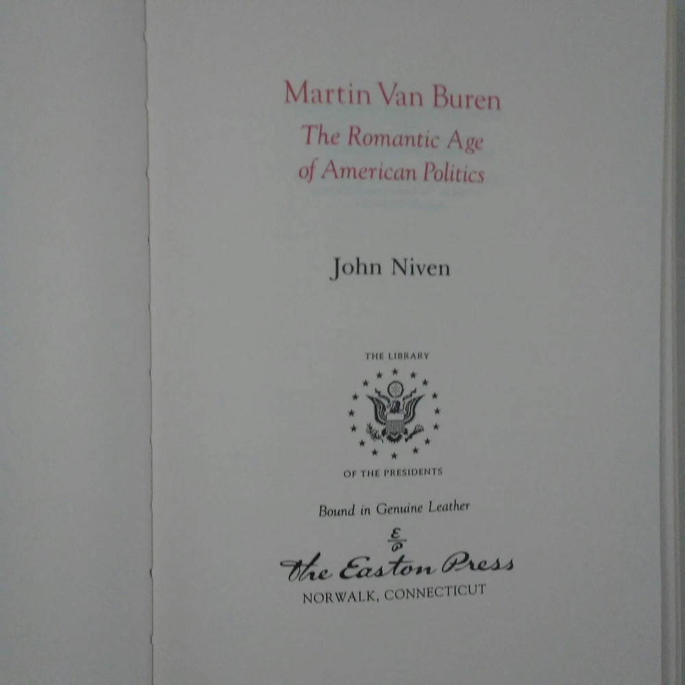 John Niven Martin Van Buren Romantic Age of American Politics 1986 Easton Press The Library of the Presidents name tag sticker is in the inside front cover with previous owners name Bound in genuine leather 22k gold embossed Scuffs on gold edge. See photos for condition