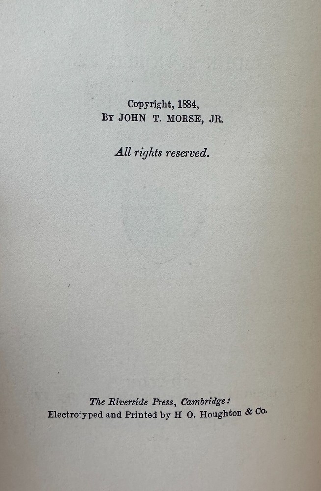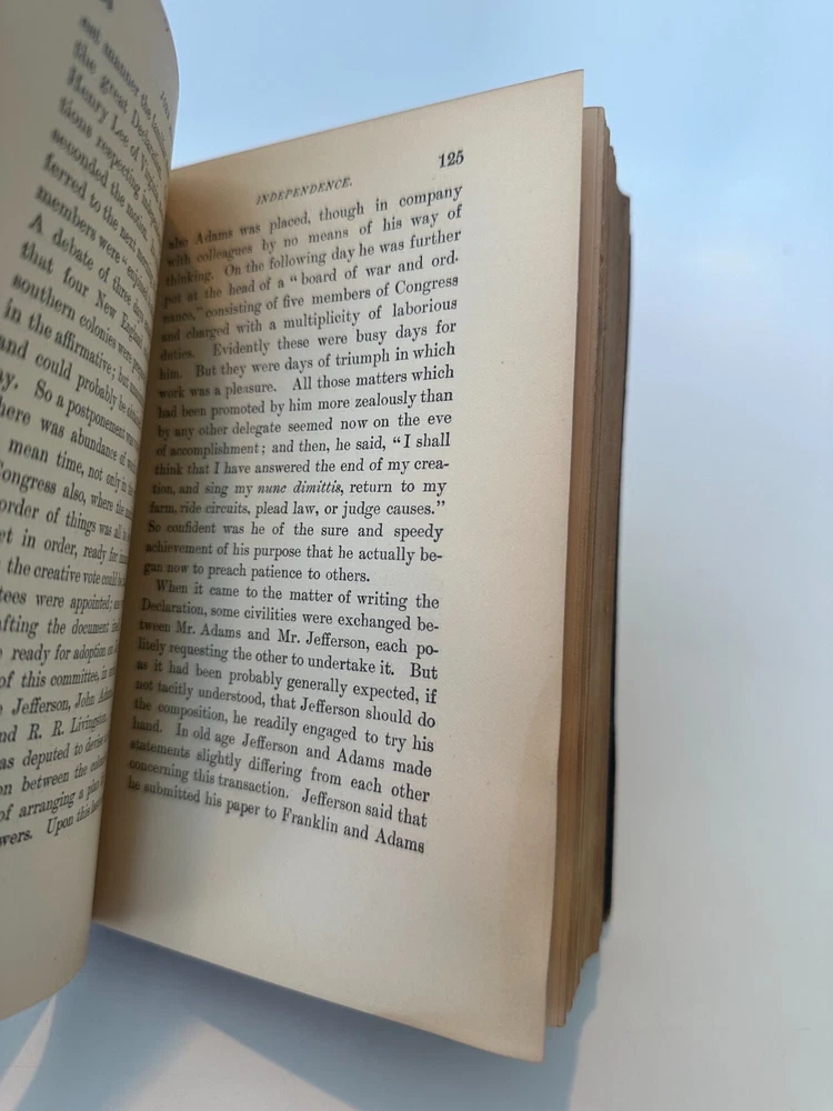 In the scarce half-leather binding. Text clean. N o ownership markings, NOT a former library book. Same or next business day ship, careful packaging, no surprises. Shipping includes delivery confirmation. Light evidence of dampstain at tail fore-edge of pp--see pics.