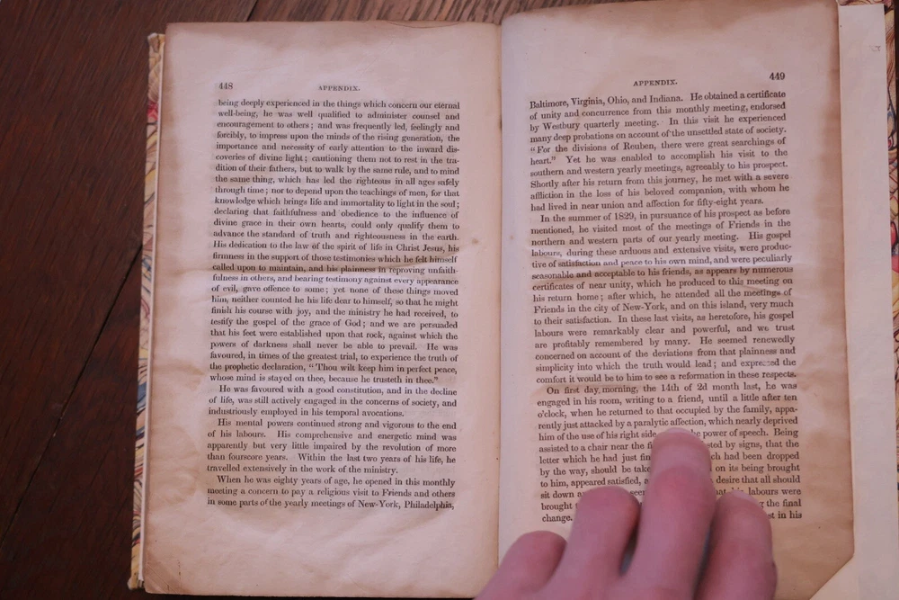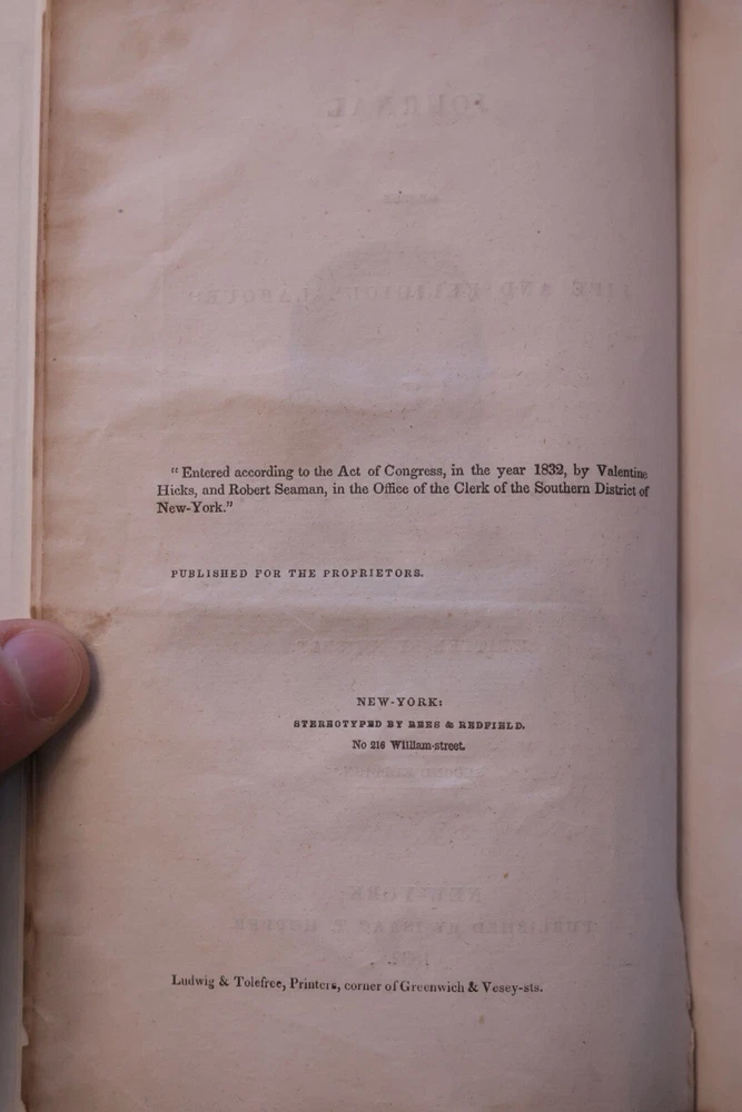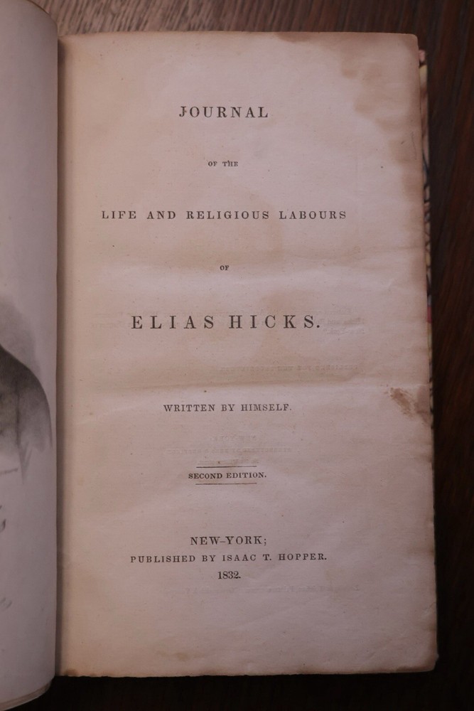 Journal of The Life and Religious Labors Of Elias Hicks written by himself New York: Isaac T. Hopper, 1832. 451 pages. Measures 8 3/4” x 5 5/8” Book has new 1/4 leather fine binding. No foxing but some water damage. See pictures for details and contact me if you have any questions. Items can be returned up to 14 days from purchased if returned in same condition as it was shipped.