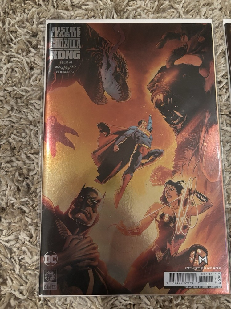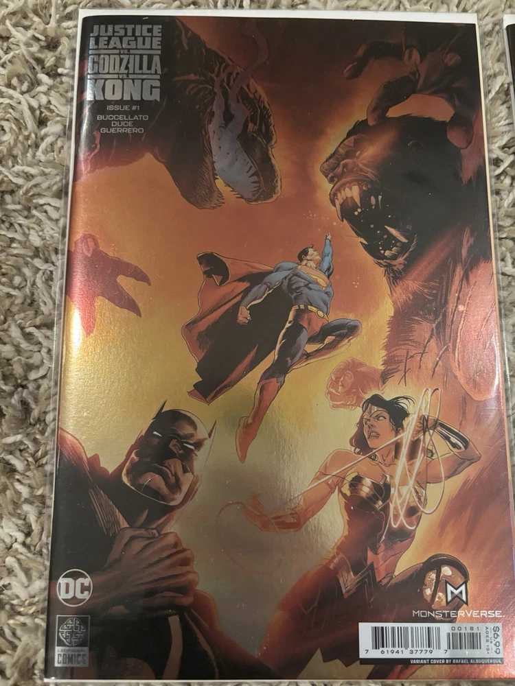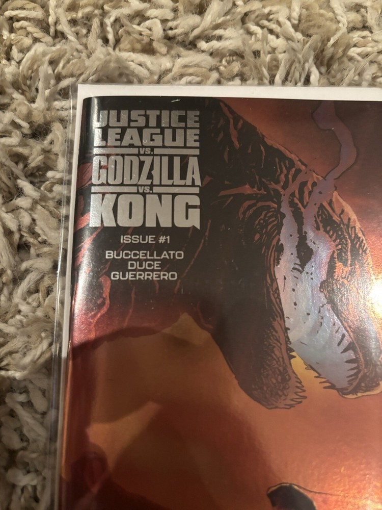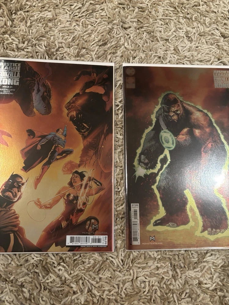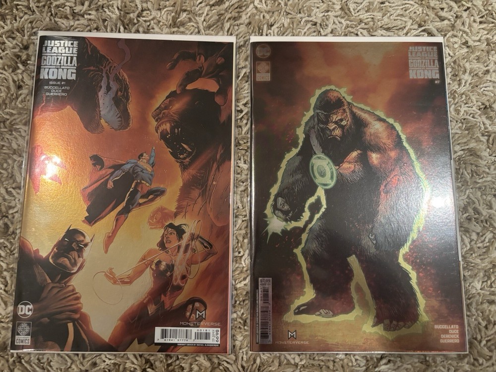 Selling a 2-Comic Lot of the Justice League vs Godzilla vs Kong comics. Items Mint condition. All items are in slip covers with cardboard backing. Includes hard-cover two issues of the comic. Both items are holographic covers. Item adult owned in a smoke-free environment. Item sold as is. See photos for details. If you have any questions feel free to ask. Comics Included: Issue 1- Variant - Holographic - Rafael Albuquerque Issue 7 - Variant - Holographic - Christian Duce & Luis Guerrero