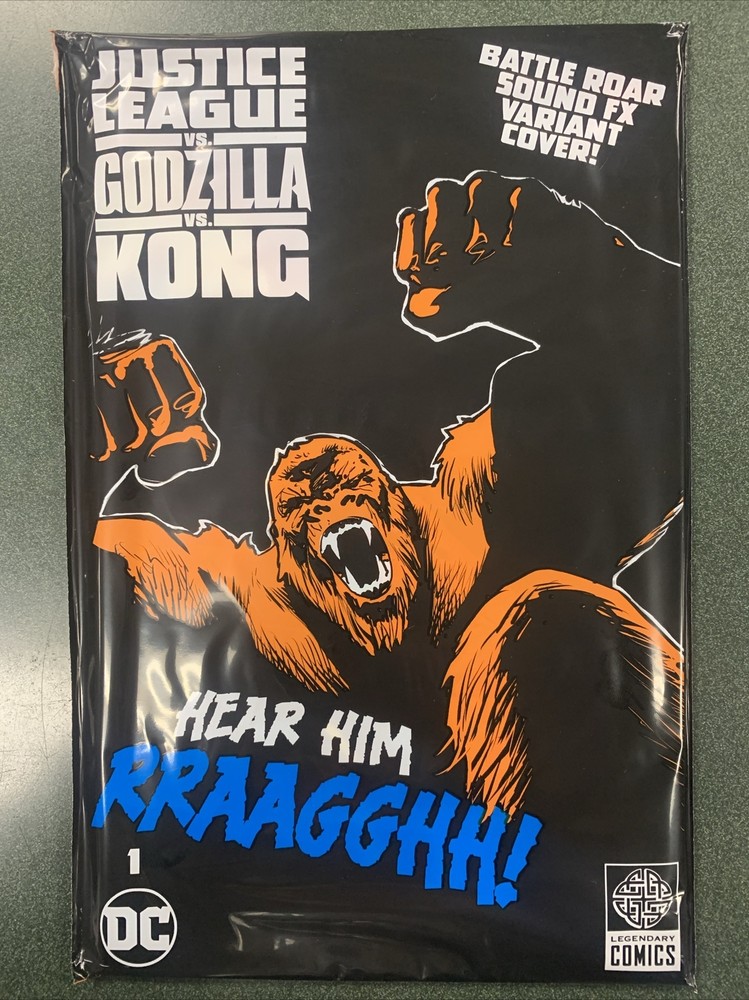 Justice League vs Godzilla vs Kong #1 (DC, 2023) Kong Battle Roar Sealed NM+ Kong Battle Roar Sound FX Variant by Christian Duce. Sealed. Never roared. Grade is an estimate, and not guaranteed. Please see pictures for additional information regarding condition.