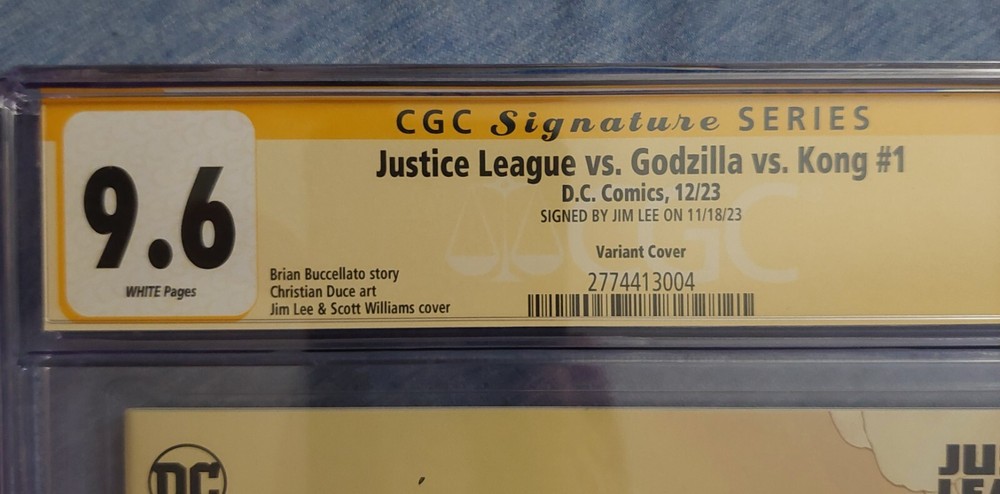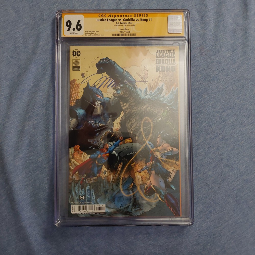 This Justice League vs Godzilla vs Kong #1 comic book is a rare gem for any collector or fan of US Comics. Signed by Jim Lee, the cover artist and writer, this CGC 9.6 graded comic is a must-have for any Justice League or DC Universe enthusiast. The autograph authentication number is 4418696012, adding to the value and authenticity of this signed copy. The comic features the iconic superhero team of the Justice League of America, along with the legendary Godzilla and Kong. Published in 2023, this first issue of the series is sure to be a prized possession for any collector. Don't miss out on the opportunity to own this unique piece of comic book history.