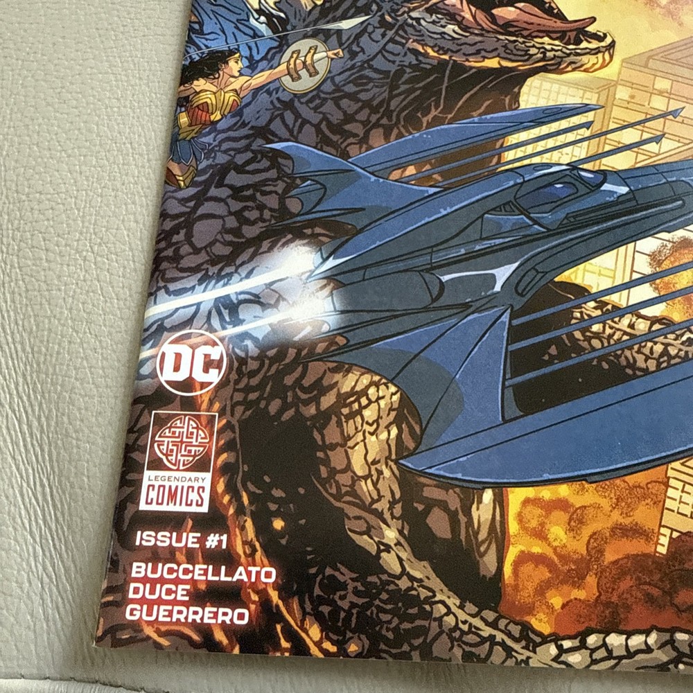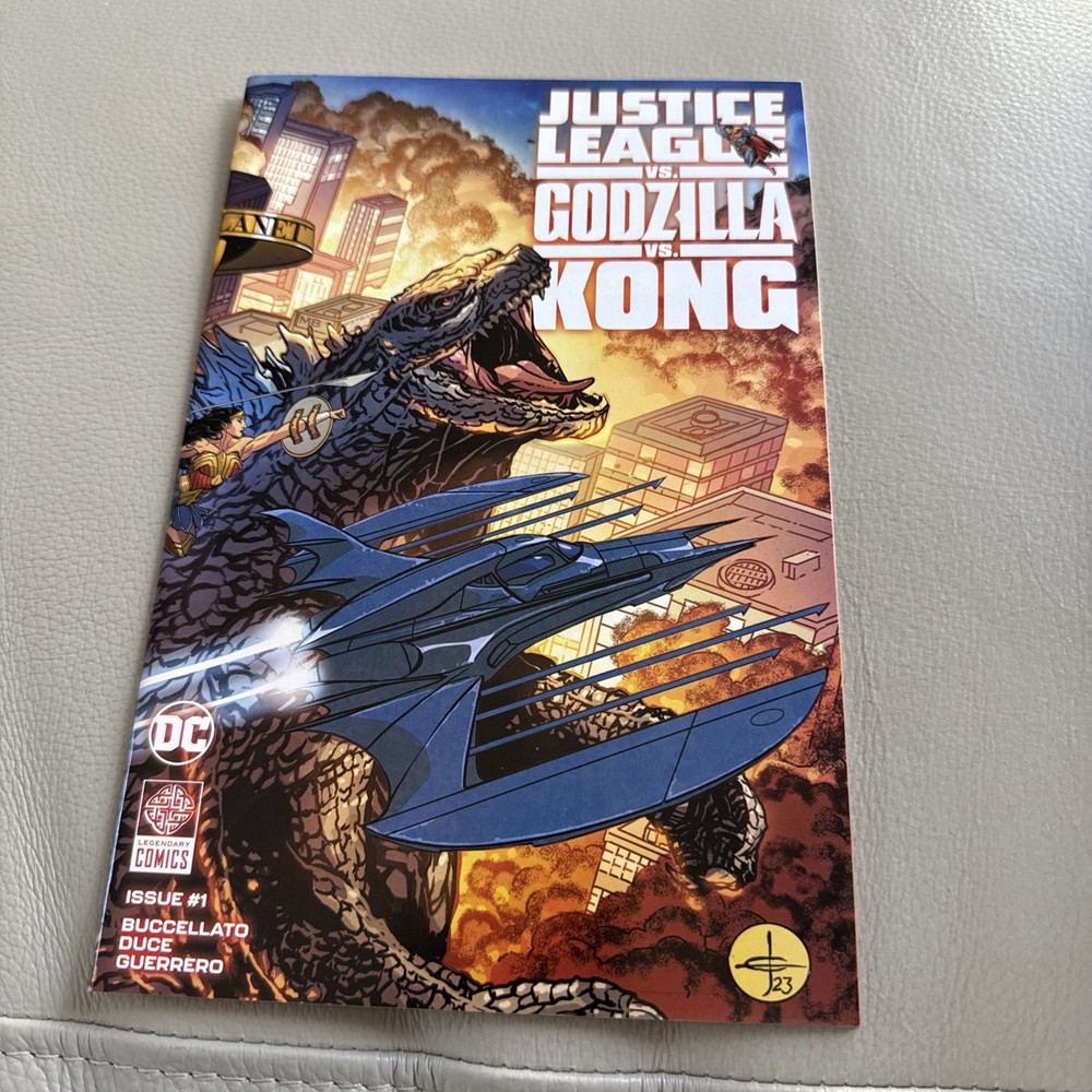 The product is a comic book titled "Justice League vs. Godzilla vs. Kong #1" featuring characters like Godzilla, King Kong, and members of the Justice League. With an artwork by Christian Duce and Brian Buccellato, the main cover variant is illustrated by Romulo Fajardo Jr. and Drew Johnson. Published by DC Comics in the DC Universe, this single issue comic book is part of the modern age era and falls under the genres of action, superheroes, and crossover. It showcases a storyline where the Justice League of America faces off against Godzilla and Kong, making it a must-have for fans of the franchise.