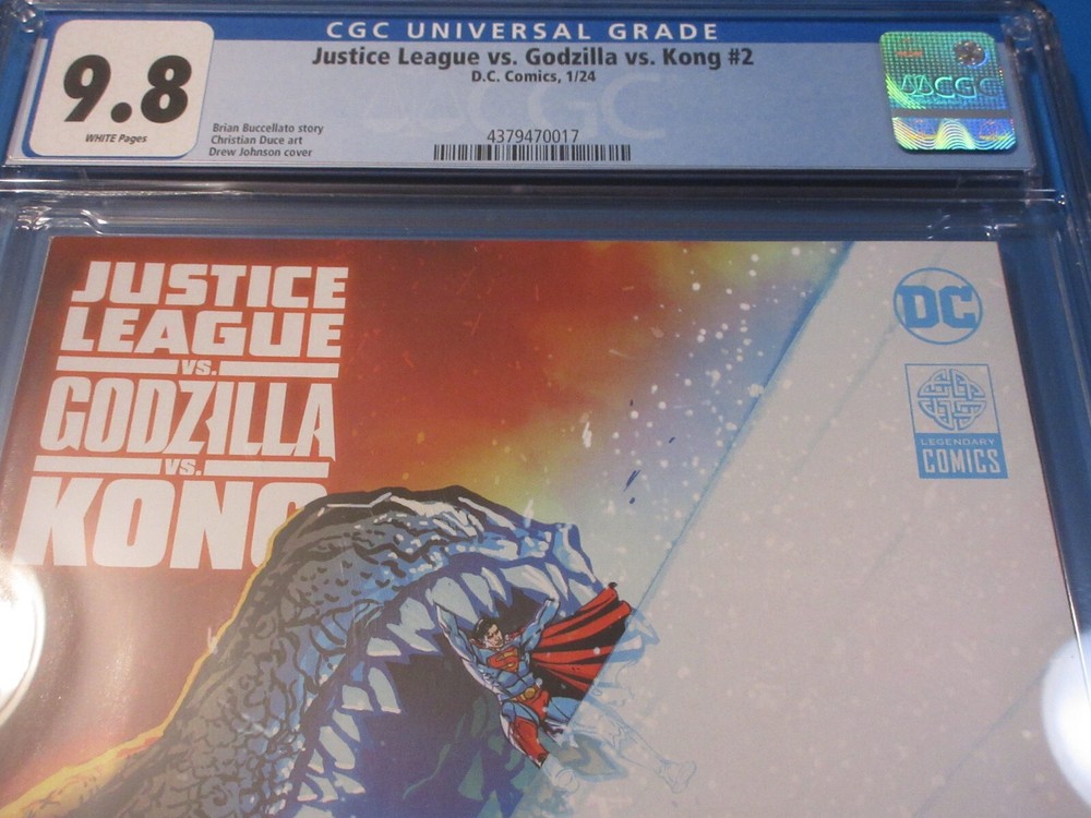 This auction is for Justice League vs Godzilla vs Kong #2 in CGC 9.8 with a brand new case . This week we are selling tons of new CGC graded slabs plus auctions of vintage keus and many other 1st appearance key issues. You are sure to find something you are looking for this week. Bonus Offer! I will add a bonus comic book for every 10 auctions you pay for on the same invoice this week. Our Shipping rates are: USA: Free for single comics with no limit, multiple comic lots have a charge and additional combined lots are half price. Canada: 12 Dollars for the 1st comic and 1.50 each after that. International: 14 dollars for the 1st comic and 1.50 each after that. CGC books are 9.99 for the 1st and 5 each after that in the USA, 22 bucks and 10 combined for Canada and 28 bucks and 14 combined for international. Feel free to ask questions. I guarantee superfast Domestic shipping! ...to open their eyes...that they may receive forgiveness of sins and a place among those who are sanctified by faith in me. Acts 26:18