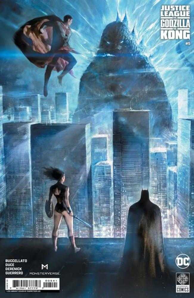 Justice League vs Godzilla vs Kong #5 (Of 7) Cover D 1 in 25 Puppeteer Lee Card Stock Variant The cataclysmic crossover between the DCU and Legendary's Monsterverse continues! The Justice League have regrouped after their initial losses and discover nefarious plans by the Legion of Doom AND the League of Assassins are underway to use the Monsters for their evil purposes. As Lois Lane uncovers truths about the monster's identities, the League also learns of a beacon that’s drawing all the creatures to one location...the final battle to save Earth is about to begin!STOCK IMAGE/PRE-PUBLICATION IMAGE UTILIZED. MAY NOT BE THE FINAL ART AS PUBLISHED. PLEASE INQUIRE BEFORE PURCHASING IF YOU HAVE ANY QUESTIONS. ITEMS WILL SHIP IN NM (9.2-9.8) UNREAD CONDITION.Welcome to Ron's Comic Closet! Explore our wide selection of items. By combining items in your cart, you can save on shipping costs, which will be automatically adjusted as you add more items.For the best service, please note that we do not ship via USPS Media Mail. Shipping via USPS Ground Advantage may take up to 20 days from date of shipment to deliver and Priority Mail may take up to 10-days from date of shipment to deliver.When stock images/pre-publication images are used, it's important to be aware that the actual artwork on the comic may differ from what is shown. Variations can occur in background colors, title color, font, advertisements and even the artist, as publishers reserve the right to make changes with minimal notice. While we strive to identify and address these discrepancies, it's possible that some may go unnoticed. It's worth mentioning that all comics will include trade dress elements such as the title, issue number, barcode, etc., unless explicitly stated in the listing description title as a Virgin Variant, Full Art, or similar designation. If you have a question about the actual image on a particular title, please contact us and we will assist. Unless otherwise specified, all comics will come bagged and boarded. However, please note that pre-sealed comic packs from the publisher will not include bags and boards. Graphic novels, trade paperbacks or hardcover books will not be bagged and boarded. Rest assured that we prioritize the safe shipment of your comics and other items, and they will be protected in a Gemini Comic Mailer, Specialty Comic Mailer Box or other sturdy packaging.NEW RELEASE COMICS: For new release comics, please be aware that while they may be available for pre-sale, they will not be shipped before the official release date set by the publisher. If your order has a combination of pre-sale items and regular stock items, your order will not ship until the official release date of the pre-sale item(s) as specified by the publisher.**Notice for Our International Buyers:** For international deliveries, we participate in eBay's Global Shipping Program. The shipping fees you pay to us are for domestic transport to eBay's Global Shipping Center only. The costs for shipping from there to your location, along with any import duties, are determined and managed by eBay and not within our control. We cannot combine orders or reduce shipping costs for international shipments. Please contact eBay customer service for assistance with these matters.Thank you for taking the time to explore our offerings. If you have any questions, feel free to reach out. Happy browsing! Justice League vs Godzilla vs Kong #5 (Of 7) Cover D 1 in 25 Puppeteer Lee Card Stock Variant The cataclysmic crossover between the DCU and Legendary's Monsterverse continues! The Justice League have regrouped after their initial losses and discover nefarious plans by the Legion of Doom AND the League of Assassins are underway to use the Monsters for their evil purposes. As Lois Lane uncovers truths about the monster's identities, the League also learns of a beacon that’s drawing all the creatures to one location...the final battle to save Earth is about to begin! STOCK IMAGE/PRE-PUBLICATION IMAGE UTILIZED. MAY NOT BE THE FINAL ART AS PUBLISHED. PLEASE INQUIRE BEFORE PURCHASING IF YOU HAVE ANY QUESTIONS. ITEMS WILL SHIP IN NM (9.2-9.8) UNREAD CONDITION. Welcome to Ron's Comic Closet! Explore our wide selection of items. By combining items in your cart, you can save on shipping costs, which will be automatically adjusted as you add more items. For the best service, please note that we do not ship via USPS Media Mail. Shipping via USPS Ground Advantage may take up to 20 days from date of shipment to deliver and Priority Mail may take up to 10-days from date of shipment to deliver. When stock images/pre-publication images are uséd, it's important to be aware that the actual artwork on the comic may differ from what is shown. Variations can occur in background colors, title color, font, advertisements and even the artist, as publishers reserve the right to make changes with minimal notice. While we strive to identify and address these discrepancies, it's possible that some may go unnoticed. It's worth mentioning that all comics will include trade dress elements such as the title, issue number, barcode, etc., unless explicitly stated in the listing description title as a Virgin Variant, Full Art, or similar designation. If you have a question about the actual image on a particular title, please contact us and we will assist. Unless otherwise specified, all comics will come bagged and boarded. However, please note that pre-sealed comic packs from the publisher will not include bags and boards. Graphic novels, trade paperbacks or hardcover books will not be bagged and boarded. Rest assured that we prioritize the safe shipment of your comics and other items, and they will be protected in a Gemini Comic Mailer, Specialty Comic Mailer Box or other sturdy packaging. NEW RELEASE COMICS: For new release comics, please be aware that while they may be available for pre-sale, they will not be shipped before the official release date set by the publisher. If your
