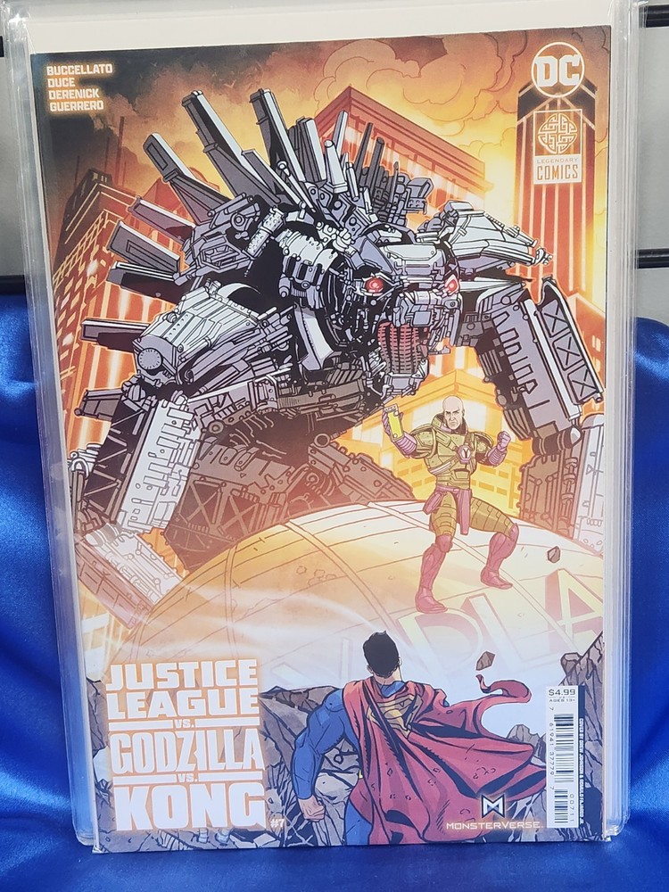 This comic book features an epic battle between the Justice League of America, Godzilla, and King Kong. The issue number 7 of the series "Justice League vs. Godzilla vs. Kong" is written by Brian Buccellato and illustrated by Drew Johnson. The cover artist is also Drew Johnson. The comic book is a first printing, boarded, and in English language. It belongs to the Monsterverse and DC Universe, and the superhero team is the Justice League of America. The genre is action, adventure, and war. The style is in color, and the format is a single issue. The publication year is 2024, and it is categorized under "Collectibles", "Comic Books & Memorabilia", "Comics", and "Comics & Graphic Novels".