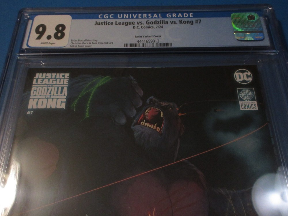 This auction is for Justice League vs Godzilla vs Kong #7 variant CGC 9.8 with a new case condition. This week we are selling an incredible collection including Amazing Spider-man , Silver Surfer, Dr. Strange, X-men, Iron Man, Hulk, Fantastic Four, Black Panther, Batman, CGC books and many other 1st appearance key issues. You are sure to find something you are looking for this week. Bonus Offer! Win 2 or more comics and get a bonus comics (10 dollar minimum) and an upgraded bonus if you win 10 auctions. Our Shipping rates are: USA: 5 dollar flat rate shipping on raw comics with no limit. Canada: 16 Dollars for the 1st comic and 1.50 each after that. International: 18 dollars for the 1st comic and 1.50 each after that. CGC books are 11.99 flat rate shipping for up to 20 CGC slabs in the USA, 24 bucks and 12 combined for Canada and 28 bucks and 14 combined for international. Australia is more. Feel free to ask questions. I guarantee superfast Domestic shipping! ...to open their eyes...that they may receive forgiveness of sins and a place among those who are sanctified by faith in me. Acts 26:18