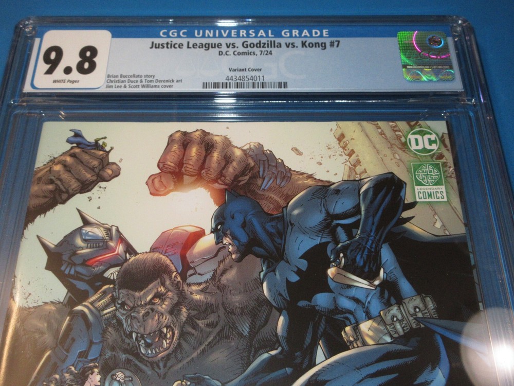 This auction is for Justice League vs Godzilla vs Kong #7 variant in CGC 9.8 with a new case condition. This week we are selling an incredible collection including Amazing Spider-man , Silver Surfer, Dr. Strange, X-men, Iron Man, Hulk, Fantastic Four, Black Panther, Batman, CGC books and many other 1st appearance key issues. You are sure to find something you are looking for this week. Bonus Offer! Win 2 or more comics and get a bonus comics (10 dollar minimum) and an upgraded bonus if you win 10 auctions. Our Shipping rates are: USA: 5 dollar flat rate shipping on raw comics with no limit. Canada: 16 Dollars for the 1st comic and 1.50 each after that. International: 18 dollars for the 1st comic and 1.50 each after that. CGC books are 11.99 flat rate shipping for up to 20 CGC slabs in the USA, 24 bucks and 12 combined for Canada and 28 bucks and 14 combined for international. Australia is more. Feel free to ask questions. I guarantee superfast Domestic shipping! ...to open their eyes...that they may receive forgiveness of sins and a place among those who are sanctified by faith in me. Acts 26:18