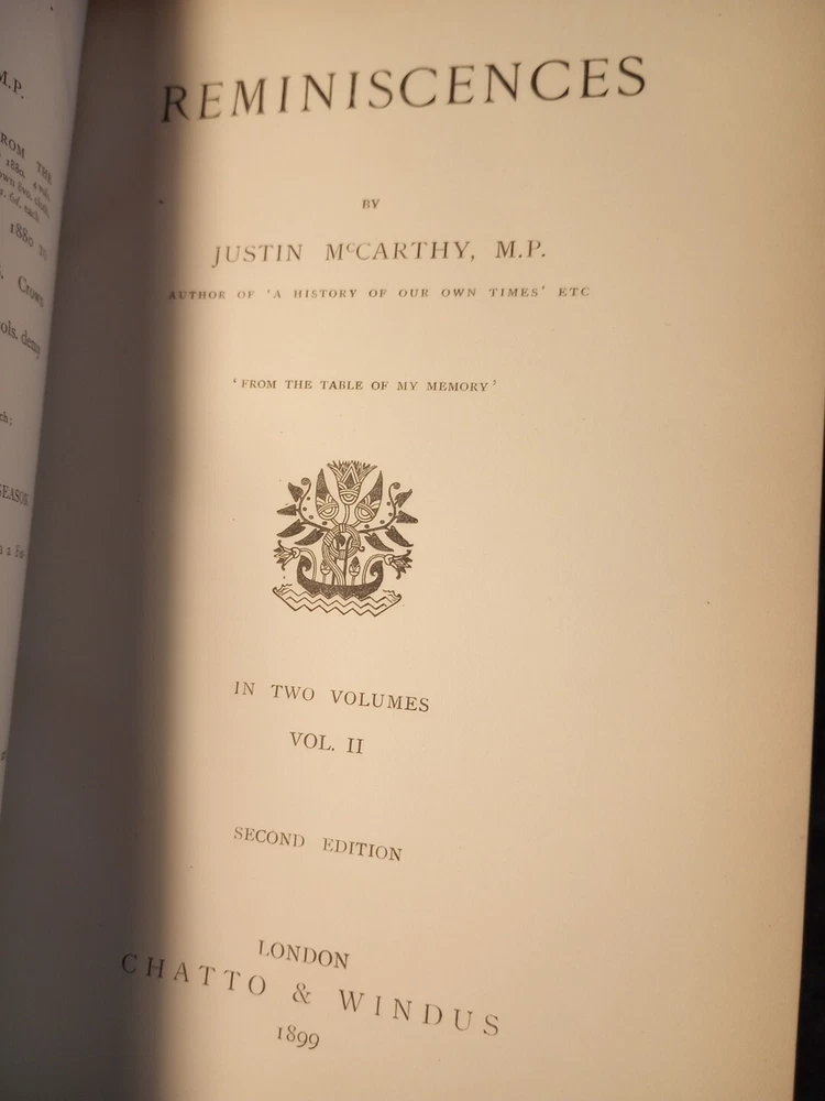 This 2 volume set of Justin McCarthy's REMINISCENCES is a rare find for book collectors and history enthusiasts alike. Published in London by Chatto & Windus in 1899, this original 2nd edition features leather binding and is written entirely in English. The subject matter of this political biography and autobiography focuses on Europe and the life of its author, Justin McCarthy. Bound by Chaz e. Lauriet, England Acceptable condition with broken bindings, tape For repair Interior in very good condition Fast free shipping worldwide Ant-1