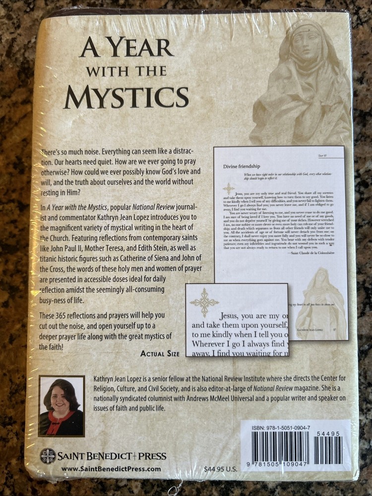 There's so much noise. Everything can seem like a distraction. Distraction, in fact, seems our oxygen. When was the last time you saw people talking on an elevator? We seem to plug in everywhere. We have earphones and screens and don't evenlook up, never mind find time for silence. Our hearts need quiet. How are we ever going to pray otherwise? How could we ever possibly know God's love and will, and the truth about ourselves and the world without resting in Him? Resting in Him. What does that even mean? In A Year with the Mystics , popular National Review journalist and commentator Kathryn Jean Lopez, who writes and speaks frequently about faith and public life, and prayer and the Church, offers readers a tour of the magnificent variety of mystical writing in the heart of the Church. Featuring reflections from both household and contemporary names like Saint John Paul II, Mother Teresa and Edith Stein, as well as titanic historic figures such as St. Catherine of Siena and John of the Cross. The words of these holy men and women of prayer are presented in accessible doses ideal for daily prayer amidst the seemingly all-consuming busy-ness of life. Each page is an invitation to enter more deeply into the life of faith. What does the road to union with God look like? What is a dark night? What is true love of the Trinity? What is this Church as bridegroom business? Mysticism is not some foreign and remote life of prayer for poets and saints in heaven; rather, it is the call for every Christian to draw more deeply and profoundly from the heart of Christ in prayer. A Year with the Mystics is a tour, a retreat, and a love story in which God seeks you out. With the small commitment of a few minutes a day to prayer with mystic saints and other holy ones, you will be making time for communication and peace in the heart of the Trinity. Your faith will grow and you will see that the life of a contemplative in the world can be yours; it can become for you the air you breathe and a wellspring of renewal in your life as a Catholic, rooted in the sacraments. This beautiful Premium UltraSoft gift edition features two-tone sewn binding, ribbon marker, gold edges, and designed interior pages., A Year with the Mystics is a tour, a retreat, and a love story in which God seeks you out. With the small commitment of a few minutes a day to prayer with mystic saints and other holy ones, you will be making time for communication and peace in the heart of the Trinity. Your faith will grow and you will see that the life of a contemplative in the world can be yours; it can become for you the air you breathe and a wellspring of renewal in your life as a Catholic, rooted in the sacraments. This beautiful Premium UltraSoft gift edition features two-tone sewn binding, ribbon marker, gold edges, and designed interior pages. |