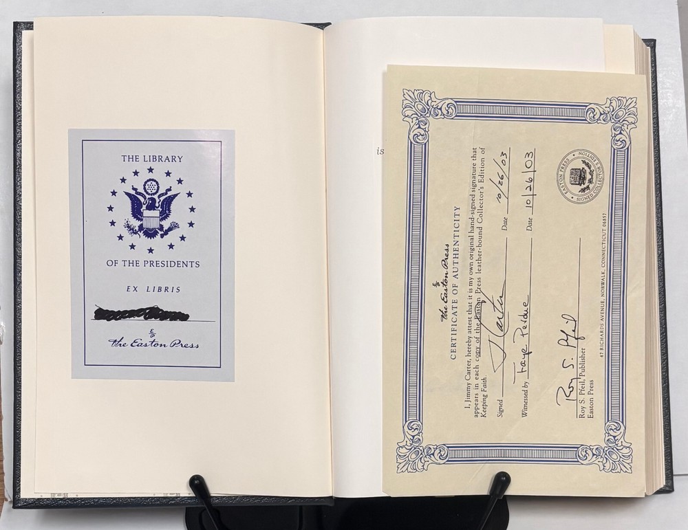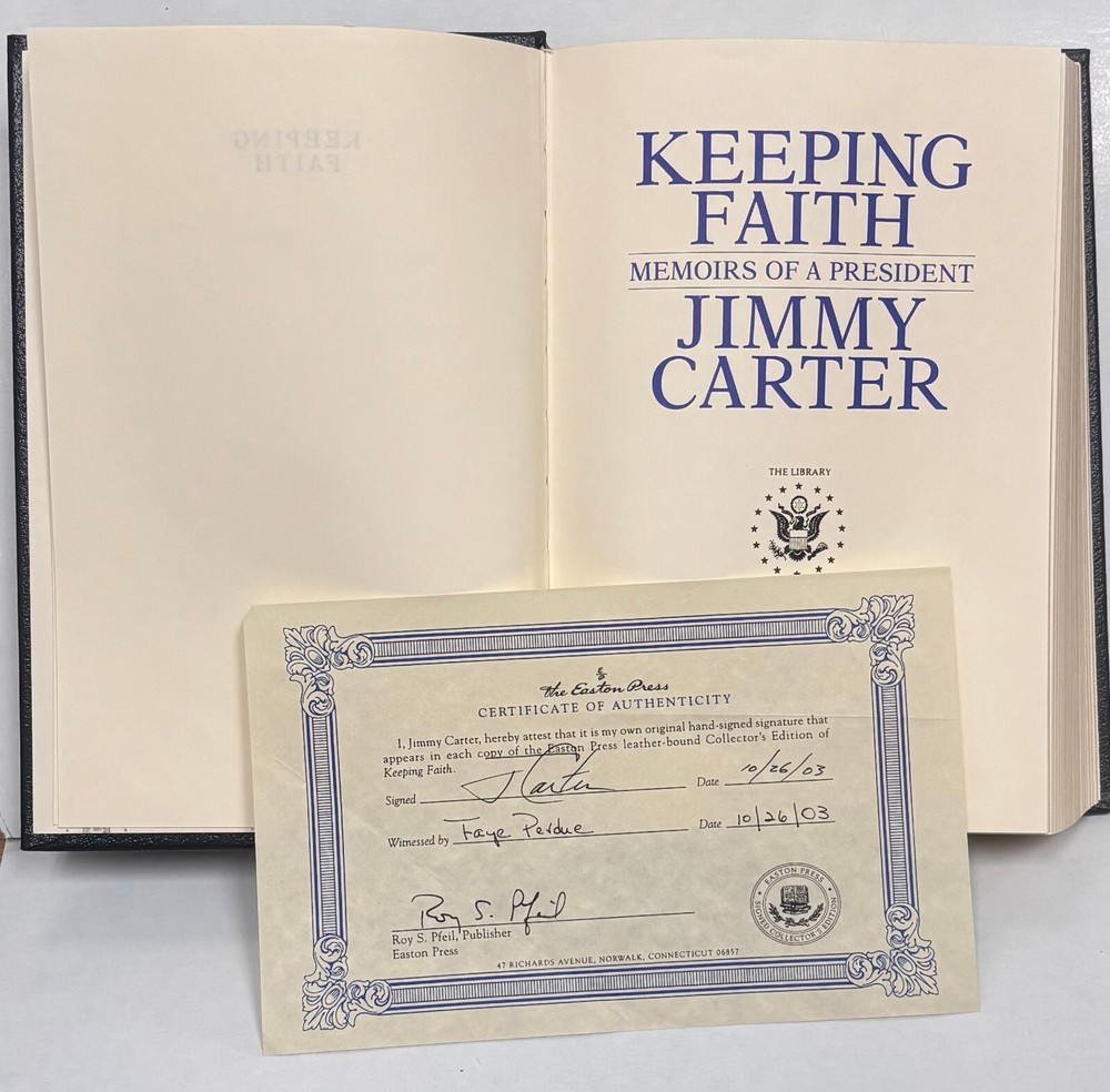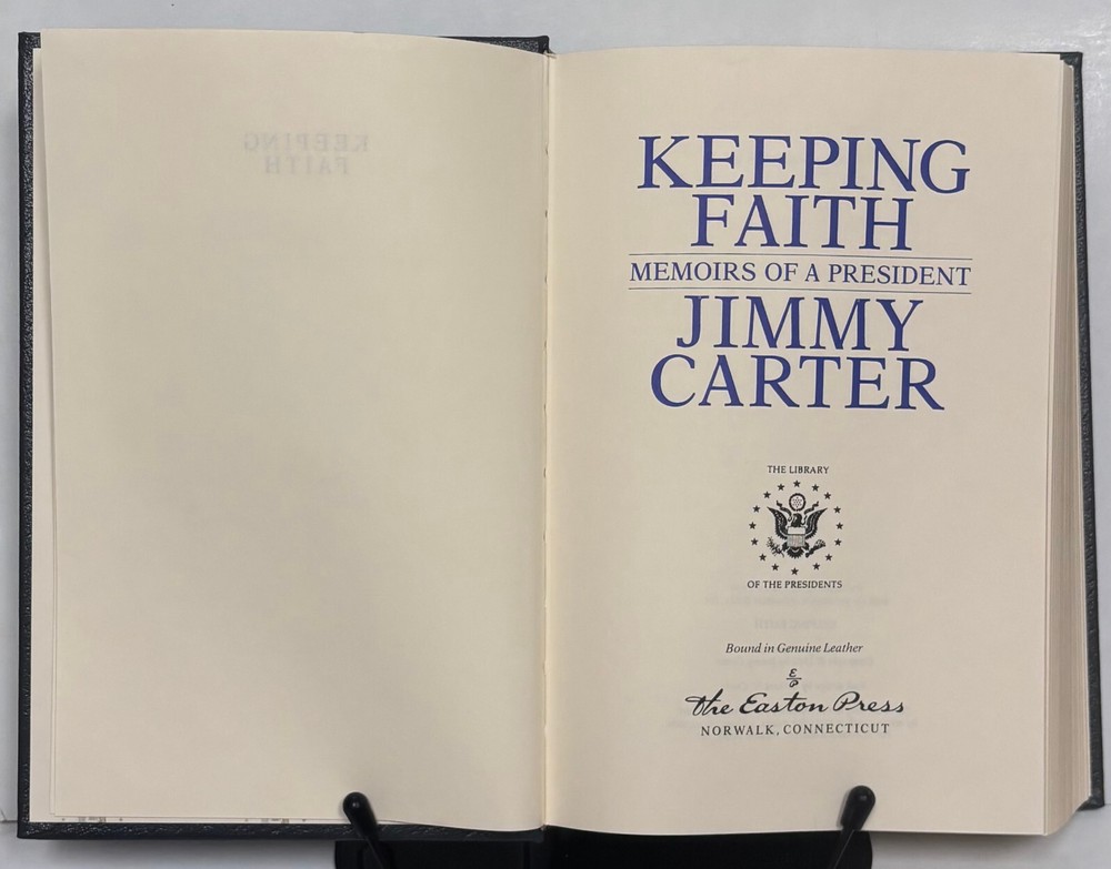 Keeping Faith by Jimmy Carter SIGNED Edition, Easton Press Leather Bound Authenticity certificate present Book is in very good condition, minimal to no wear, text is clean. Ex Libris sticker has been used before and previous owner scratched out the name (see photo)