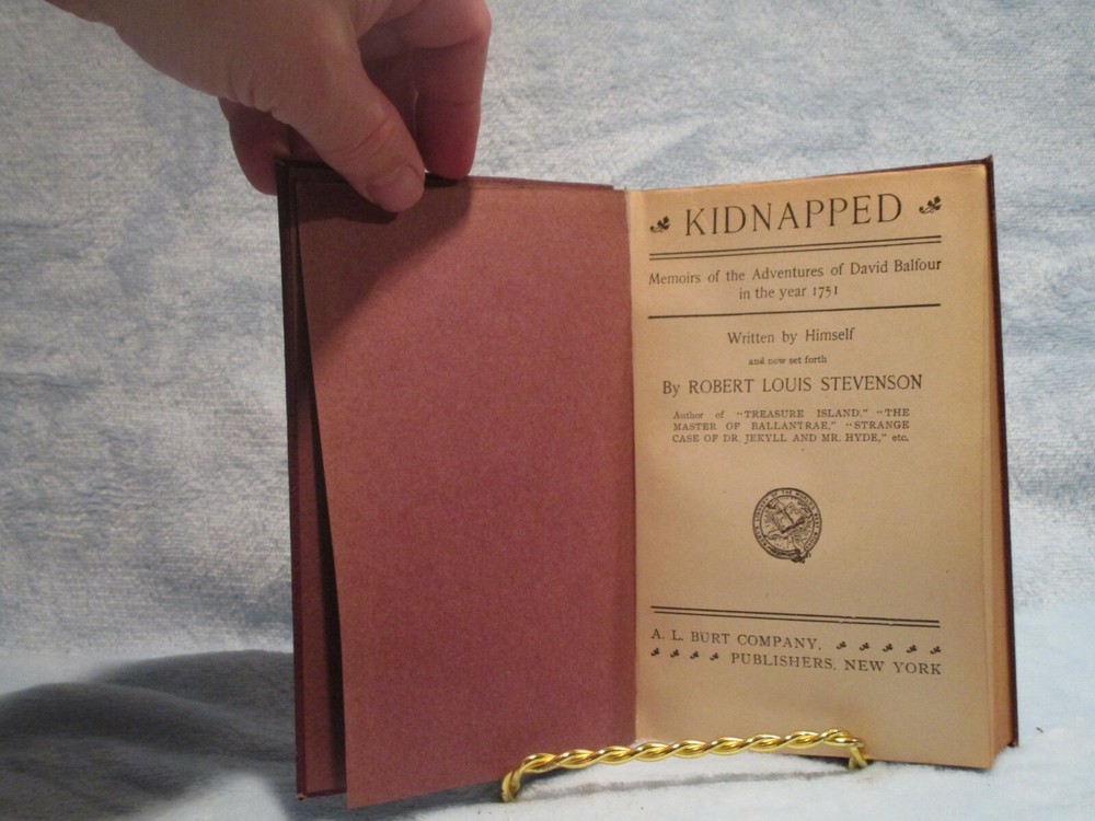 This vintage hardcover book titled "Kidnapped" by Robert Louis Stevenson is a thrilling adventure novel set in 1751. The book is in its original English language and has been published by A.L. Burt Company, Publishers New York. It features a leather-bound cover and is perfect for any book collector or lover of adventure genre. The book is not signed or personalized and does not have an ex libris or inscription. It is a great addition to any bookshelf or collection. The narrative type is fiction and the book falls under the category of Books & Magazines. Get ready to be transported to the world of adventure with this classic book.
