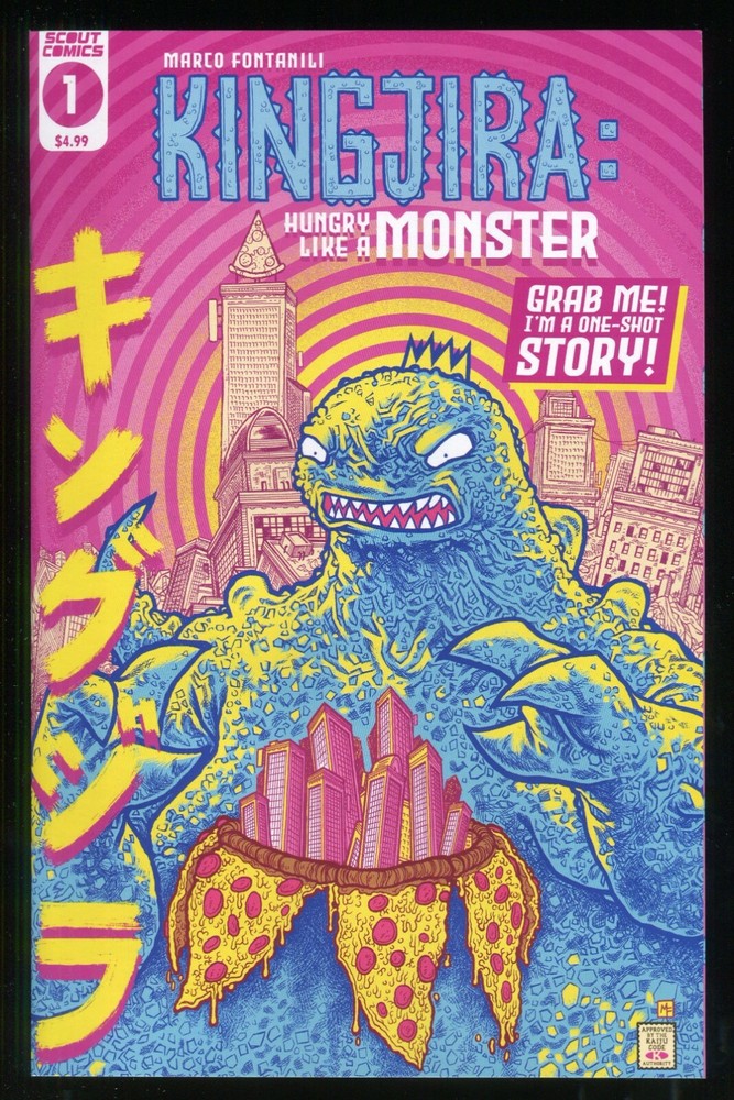 Kingjira : Hungry like a Monster One-Shot Comic Writer: Marco Fontanili Artist: Marco Fontanili Editor: Andrea Lorenzo Molinari Cover by: Marco Fontanili Kingjira , the king of monsters, has escaped from his prison and he is causing panic in the city. The reason for his fury is simple: the King is hungry. And we all know what kings' food is, don't we? Simple: the pizza! ' Kingjira - Hungry like a Monster' is a funny tribute to the Kaiju genre! Story/Spoilers: Kingjira is on a rampage through the city in search of pizza. He faces multiple opponents throughout his destruction, but none pose a threat. He ends up falling for a bait pizza planted by a military higher-up. Eating the pizza causes him to shrink down and be recaptured. Now back in prison, humanity will not make the mistake of letting him go without pizza ever again… One-Shot Comic is bagged & triple boarded and will be carefully / securely packaged then shipped via USPS Priority Mail to insure that it arrives to you perfectly and quickly. First Printing Publisher: Scout Comics Publication Date: February 2022 Format: FC, 32 pages, Comic, 10.20" x 6.65" UPC: 022211684244 Collectible Entertainment note: One-Shot Comic is Brand New & Unread. Very Fine + condition! Beautiful!! Please See Scans!! A must have for any serious Godzilla and/or Gigantic Monster collector / enthusiast. A fun & entertaining read. Very Highly Recommended. Please read return policy. Please check out all my other Groo or Conan or Magazines or Horror or Werewolf or Zombie or Frank Frazetta or GI Joe or War or Judge Dredd or Infinity or Marvel Secret Wars or Crisis on Infinite Earths or Spawn or Venom or Carnage or Toxin or Kolchak or Mad Max or Star Trek or Starship Troopers or Science Fiction or Horror or James Bond or Adventure Time or Movie Adaptations or Spider-Man or Flash Gordon or Richard Corben or Indiana Jones or Star Wars or Jurassic Park or Dinosaurs Attack or Mars Attacks or Planet of the Apes or Godzilla or Thing or Robocop or Aliens or Predator or Terminator listings by visiting my store and typing Groo or Conan or Magazine or Horror or Werewolf or Zombie or Frank Frazetta or GI Joe or War or Judge Dredd or Infinity or Marvel Secret Wars or Crisis on Infinite Earths or Spawn or Venom or Carnage or Toxin or Mad Max or Kolchak or Star Trek or Starship Troopers or Science Fiction or James Bond or Adventure Time or Movie or Spider-Man or Flash Gordon or Richard Corben or Indiana Jones or Star Wars or Jurassic Park or Dinosaurs Attack or Mars Attacks or Planet of the Apes or Godzilla or Thing or Robocop or Aliens or Predator or Terminator in the store search engine. Track Page Views With Auctiva's FREE Counter