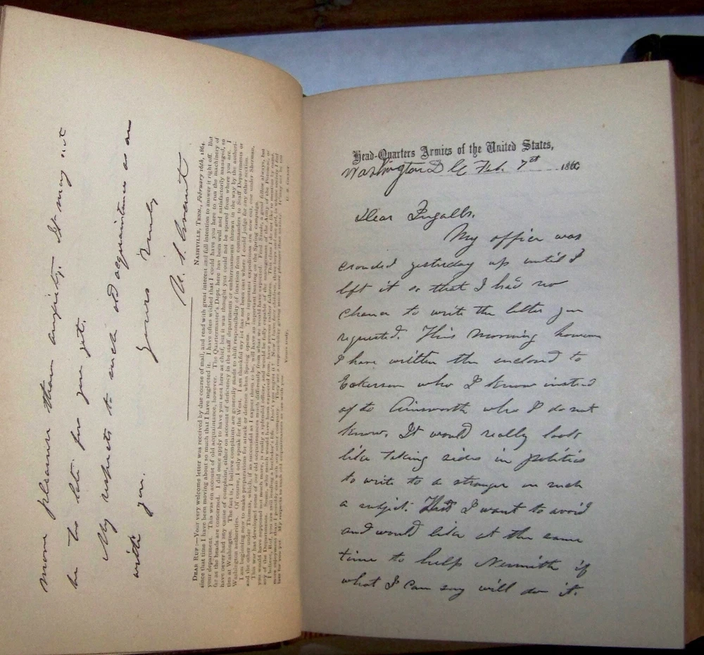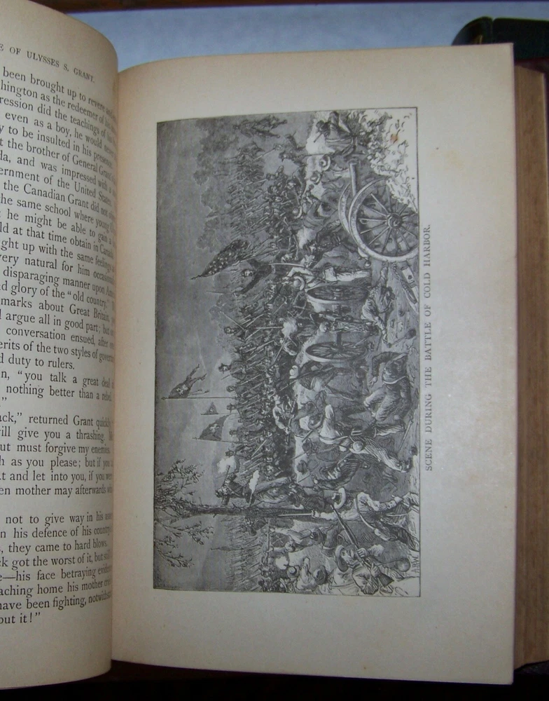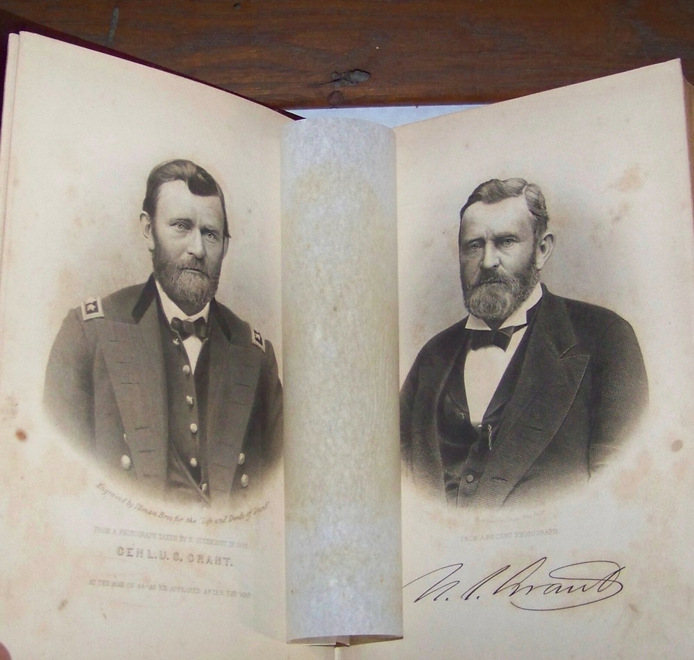Colonel Herman Dieck ~ Life And Public Services of General U. S. Grant Memorial Edition Profusely Illustrated Hero Publishing Company, c1885 Beautifully bound Full Leather Hardcover, roughly 6.5" X 8.5" tall. Very good, Bright Gilt detailing to cover and title to spine, blind stamped back board, marbled and papers and pastes downs, four raised bands and five compartments to spine with intricate tooling. Gilded page ends. some corner wear and bumping, light wear to extremities, pages tanned with scattered foxing, a few pages with small corner fold creases. small amount of play to binding, otherwise sturdy. Rare in full leather! Beautiful binding, a fine example of an extraordinary antique book. Antiquarian books can be fragile and should be handled with the utmost care and attention. 100% Satisfaction Guaranteed. If You Are Not Happy With Purchase Just Return For A Full Refund.