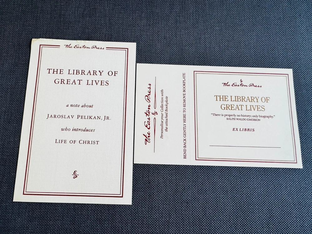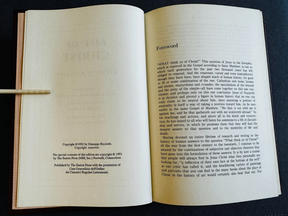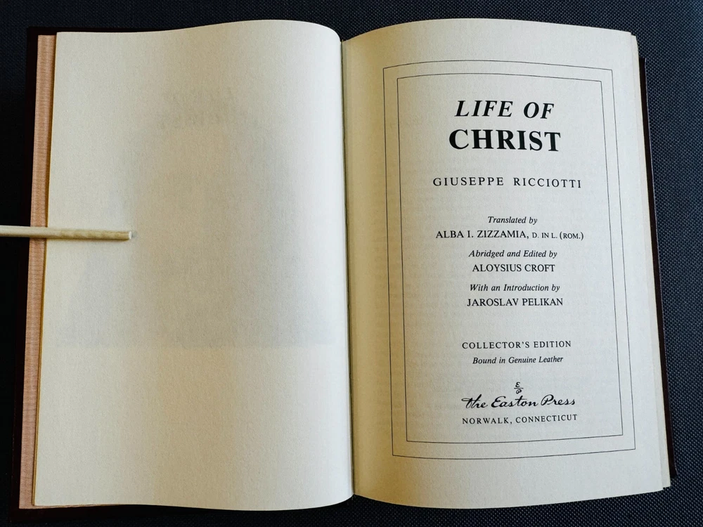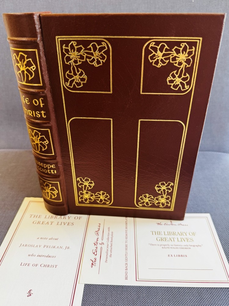 LIFE OF CHRIST by Giuseppe Ricciotti published by Easton Press in 1991 and bound in leather. The book is in like new condition with a tight binding and no writing, inscription, attached name plaques or marks. The Easton Press original insert and the unattached name plaque are included. The book is 8-3/4" by 6" with 402 numbered pages. Please view all the pictures for more information.