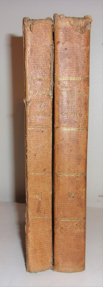 LIFE OF GEORGE CANNING Two volumes, complete ************************************** MEMOIRS OF THE LIFE OF THE RIGHT HONORABLE GEORGE CANNING ......Published by Southwort h, New York in 1830......Many illustrations, includin’ some real nice full-page ones.....The books are printed in English…… DESCRIPTION - The books are bound in 1/2 leather, with marbled boards, and gold letterin` on the spines......These are fairly small books, each book a-measurin' about 8 inches high, and about 4 1/2 inches across the front.... CONDITION - The set is in purty good condition...The pages are good, with some spots and light waves from age, and a few dogears……The covers have general wear and tear, with the letters on the spine mostly rubbed away, and the hinges of one book is cracked in some parts, but in no danger of comin’ loose……A purty good copy of this rare set …….I think you will be pleased with i t...... PAYMENT AND SHIPPIN ' - 'Course the jubilant winner is gonna hafta pay $4.95 for postage and handlin'.........Multiple purchases save on shippin' ****************************** Now while you're here, why don't you give my other auctions a look-see...Why, I 'spect I got a wagon load of mighty good books over yonder in my Book Barn.... Thanks a heap....!!! - - - ol' arkee