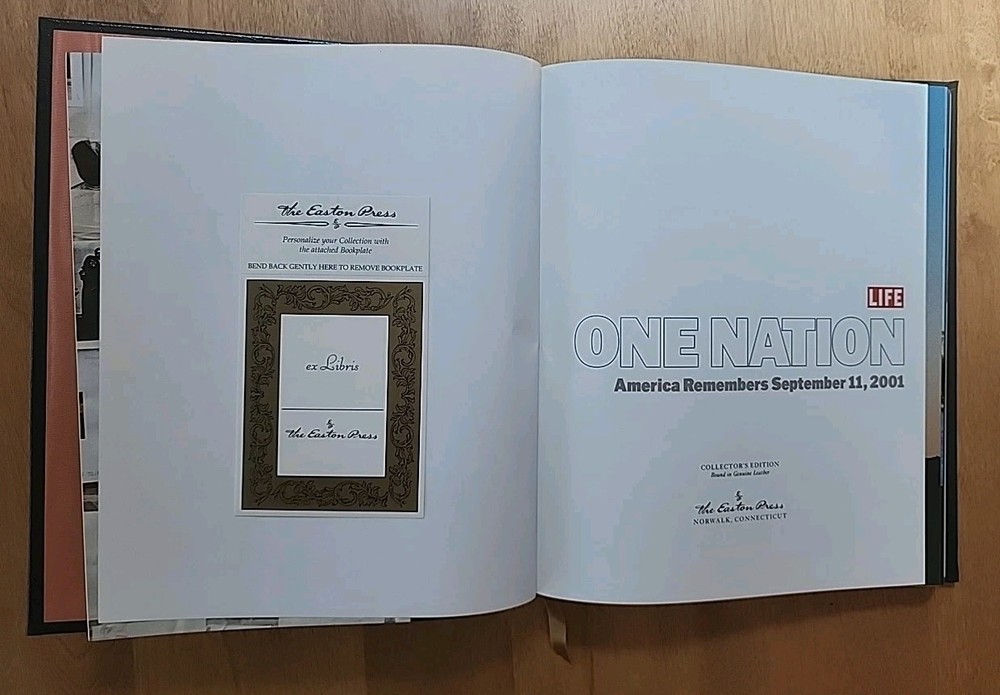 The product is a leather-bound commemorative book titled "One Nation, America Remembers September 11, 2001" published by Time Warner Trade Publishing. It is a nonfiction history book intended for adults, with a collector's edition featuring 193 pages. The book, authored by Life Magazine Editors, offers a narrative of the September 11 attacks and their impact on America. The leather-bound edition adds a touch of elegance to this patriotic tribute to the events of 9/11.