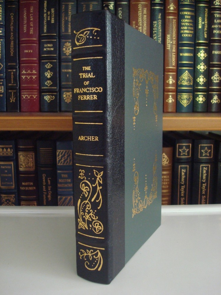 TITLE: The Life, Trial, and Death of Francisco Ferrer AUTHOR: William Archer DATE: 2000 PUBLISHER: Gryphon Editions SERIES: The Notable Trials Library CONDITION: Quarter leather bound edition. Raised bands on spine with gilt lettering. Gilt page edges and cover design. Ribbon page marker. Marble design endpapers. Book is new and sealed in publishers shrinkwrap.
