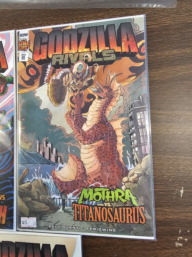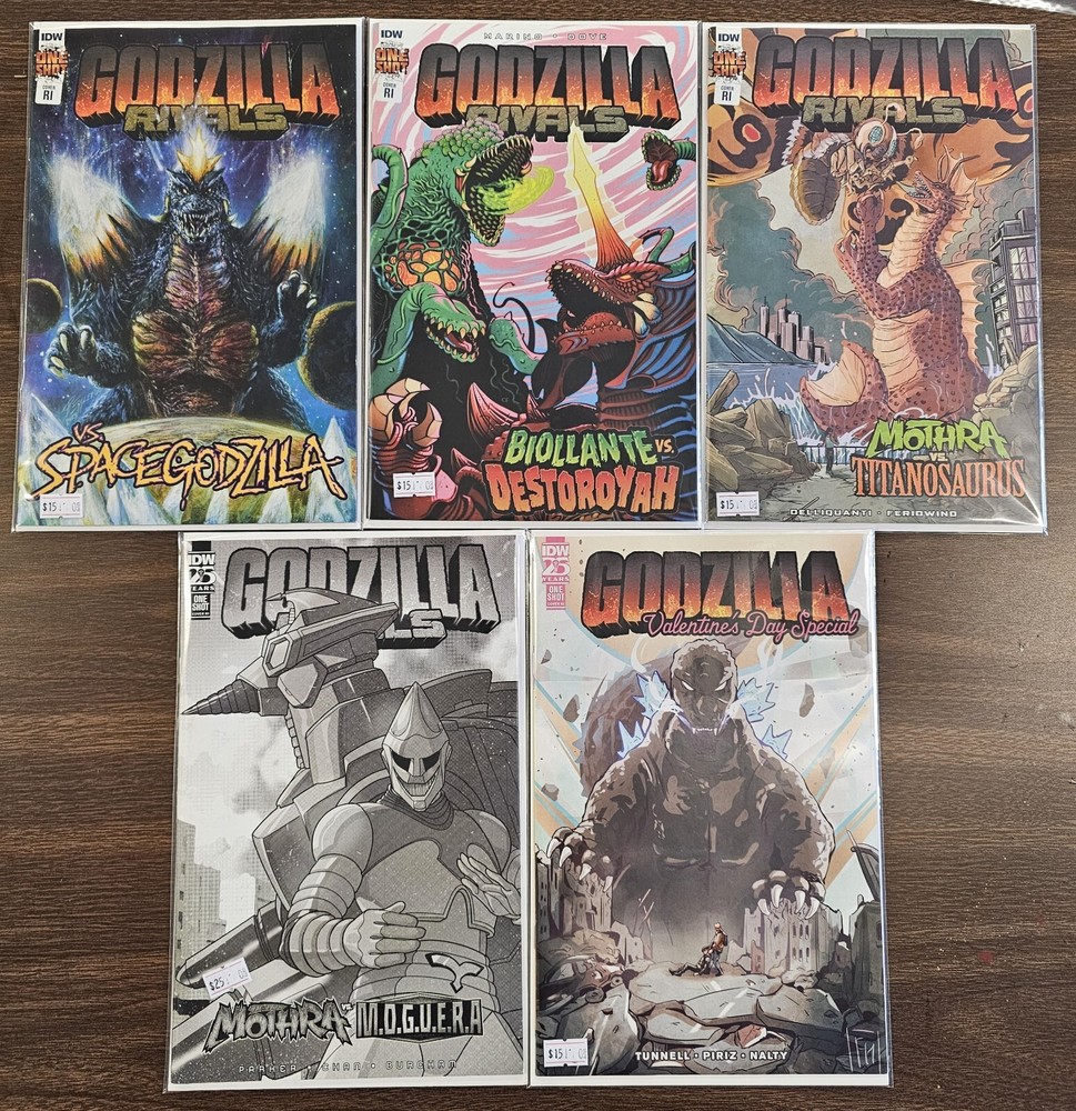 This is a fantastic comic book lot featuring the iconic characters of Mothra, Godzilla, and others published by IDW Publishing in 2023, this set includes all 1:10 variant covers from the GODZILLA RIVALS series. The story takes place within the Monsterverse universe and is perfect for fans of action, films, movie & TV, and monster genres. The mixed lot includes issues from the modern age era (1992-now) and features a colorful style. This one-shot set is a must-have for collectors and general audiences alike, and is sure to be a valuable addition to any comic book collection. Book value for the set is $85