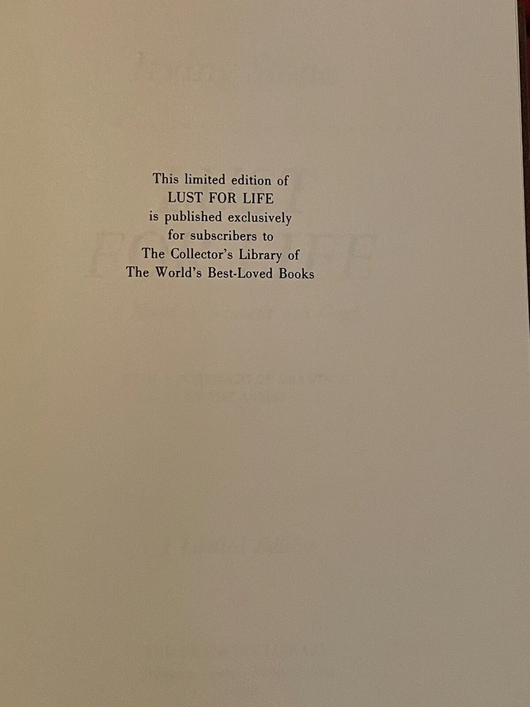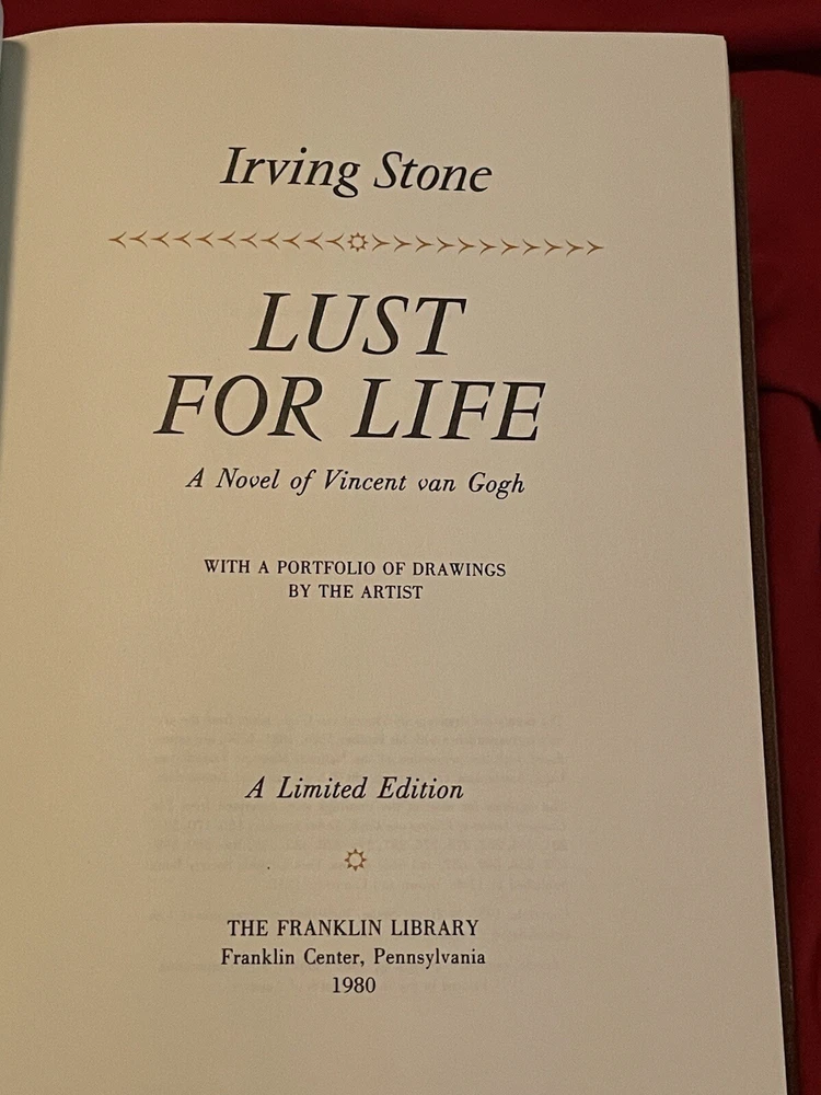LUST FOR LIFE by Irving Stone - A NOVEL OF VAN GOGH - Franklin Library World’s Best Loved Books Collection - 1980 Limited Edition Leather Bound Book in used condition. Does not include notes booklet. Please see attached pictures for condition of actual book and contact me with any questions prior to buying. Shipped via USPS Media Mail. Thanks for looking!