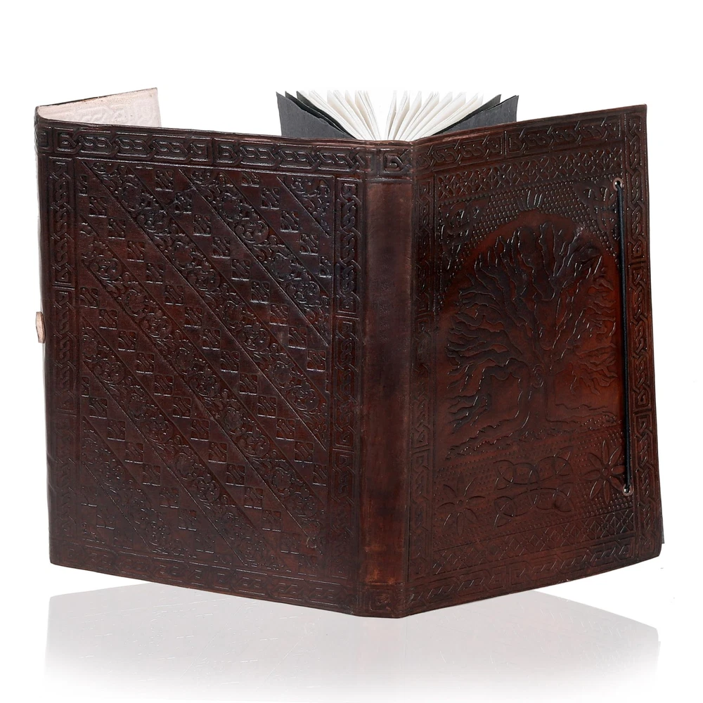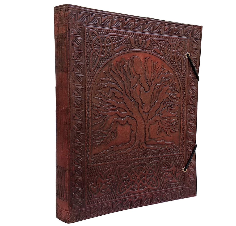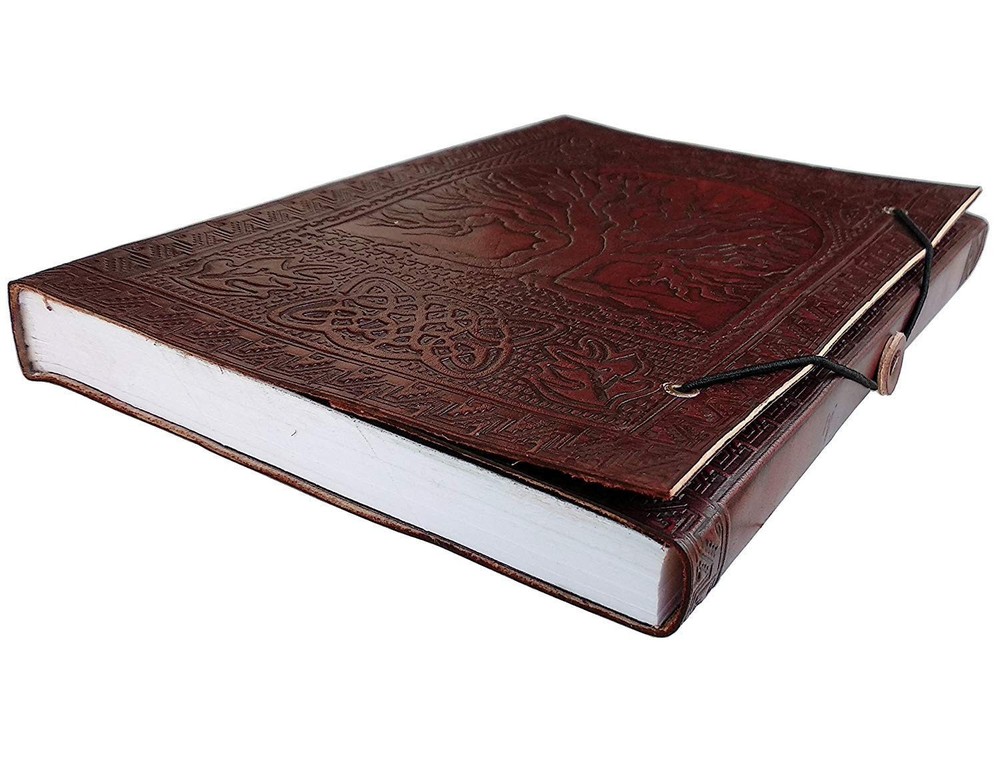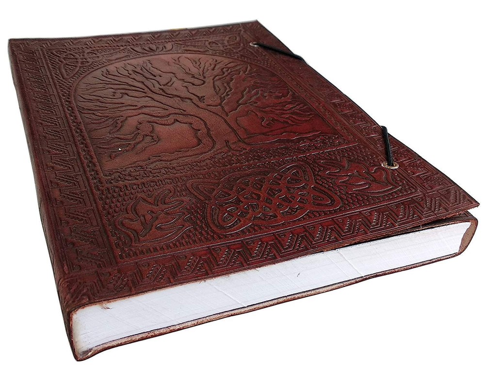 Product Page :15.01}]} Leather Journal Refillable Unlined Paper Tree of Life Handma Description: This Brown leather journal with Unlined paper is the perfect journal to capture your important memories. All our journals are handcrafted and are complemented with a beautiful engraved design. The rustic finish can accompany you in all your travels or as a daily companion to capture your thoughts. The paper is high quality, natural 115GSM paper that prevents marker bleed, pen bleed. The hand stitched design will last for years to come. This leather journal for men and women is a perfect gift for any occasion. We value our customers and are committed to ensuring a wonderful experience. Features: Size: 10" x 7" x 1" inches leather journal by KK's Leather GENUINE DURABLE LEATHER :- Soft & Supple Dark Brown Genuine Leather with a real leather scent.a special keepsake for your thoughts, plans & ideas. HANDMADE: Made by hand and inside 120 pages both side 240 pages handmade acid paper VINTAGE AND ANTIQUE APPEARANCE: tree of life embossed in between the journal lovely hand work PERFECT USE: as a writing journal , diary , appointment journal , notebook , collage journal gift