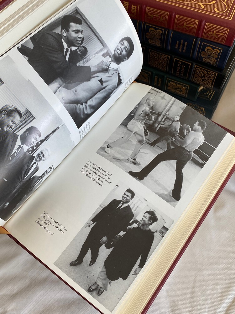 This is a rare signed first edition leather bound book by Muhammad Ali and Thomas Hauser. The book discusses Ali's life in the world of sports, making it an excellent choice for sports enthusiasts. The book is published by Easton Press and is bound in high-quality leather, giving it a luxurious feel. The book is in excellent condition, with no signs of wear and tear.The book is written in English and is a biography and autobiography of one of the most famous sportsmen of all time. The book is personalized with a signature by Ali and is a great addition to any collection of books on sports. The book is sold as an antiquarian and collectible item and is perfect for those who love rare and unique books.
