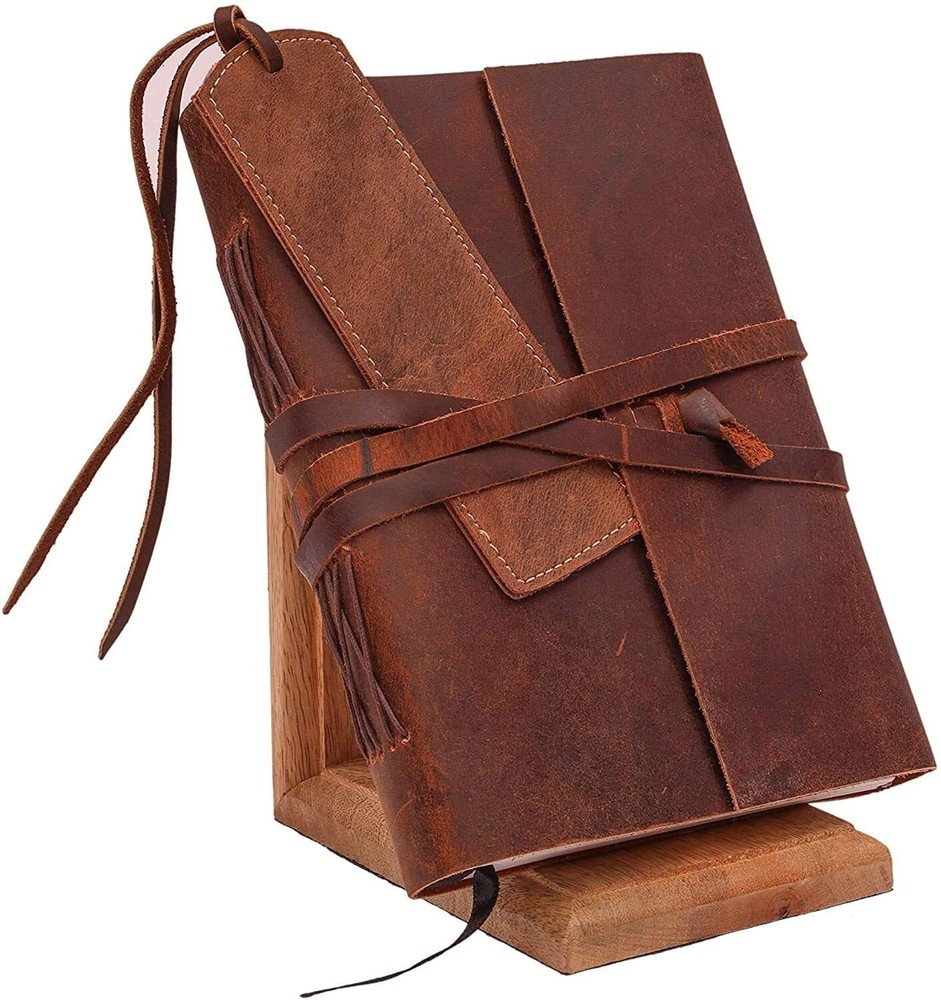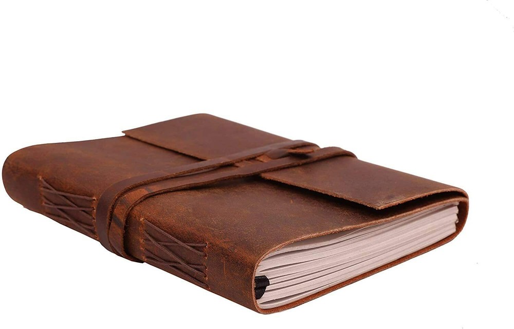 IDEAL SIZE: Handheld, medium size (7 x 5 x 1.2 inches). Easily carry this journal in your daily life and on your most exotic adventures. If your vintage journal arrives damaged or you find anything faulty with the craftsmanship HANDCRAFTED FROM GENUINE LEATHER: Each journal is specially designed and handmade from premium split leather. Artful hand stitching to create a timeless space for your thoughts THICK PAPER: 180 pages of thick, natural White TELL YOUR STORY: The journal features White paper. THE PERFECT GIFT QUALITY YOU CAN TRUST: high-quality craftsmanship makes this an essential tool for Poetry, Art, Sketching, Writing, Drawing, Calligraphy Leather Journal Give your loved ones a thoughtful gift that will last for years to come! Great for a birthday, anniversary, or graduation.