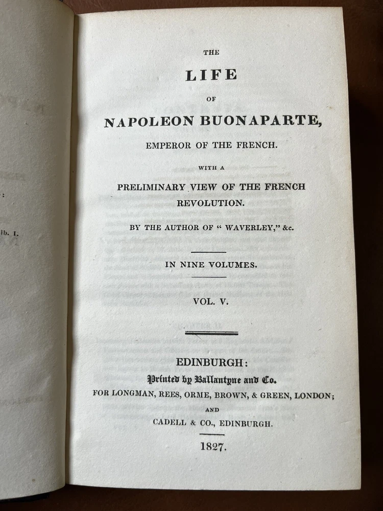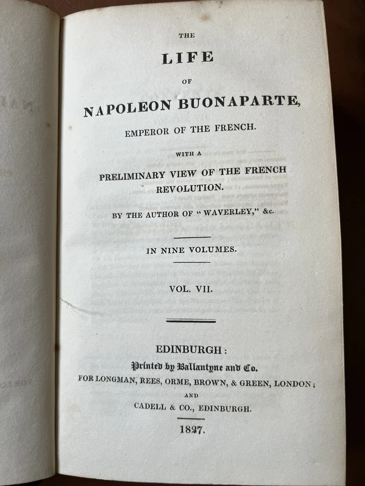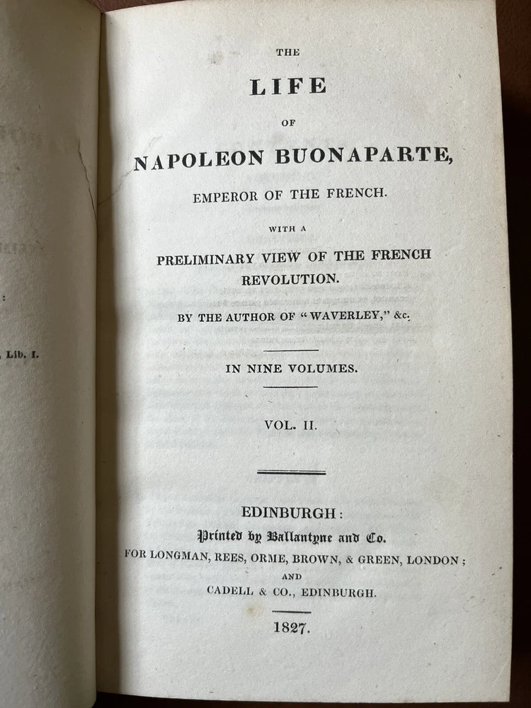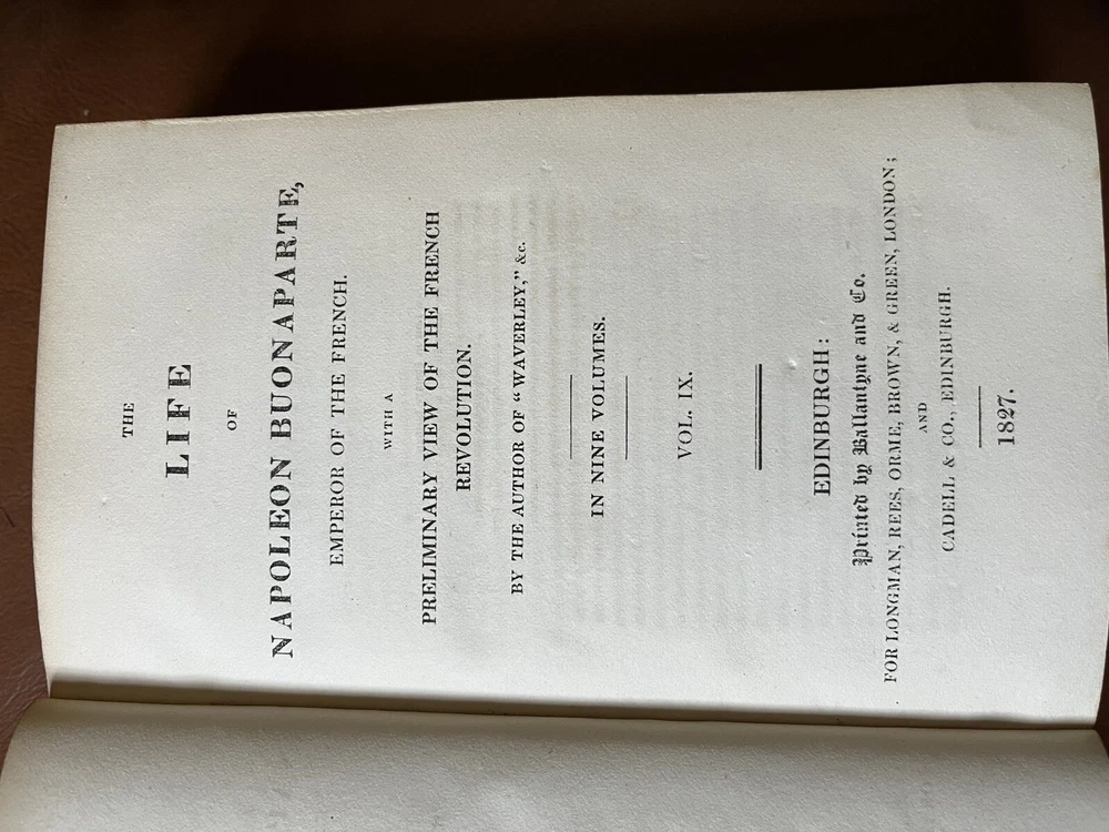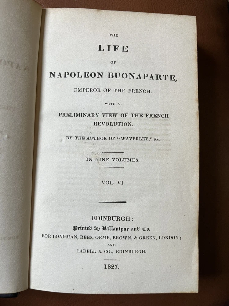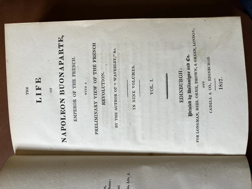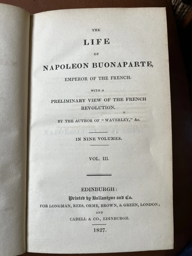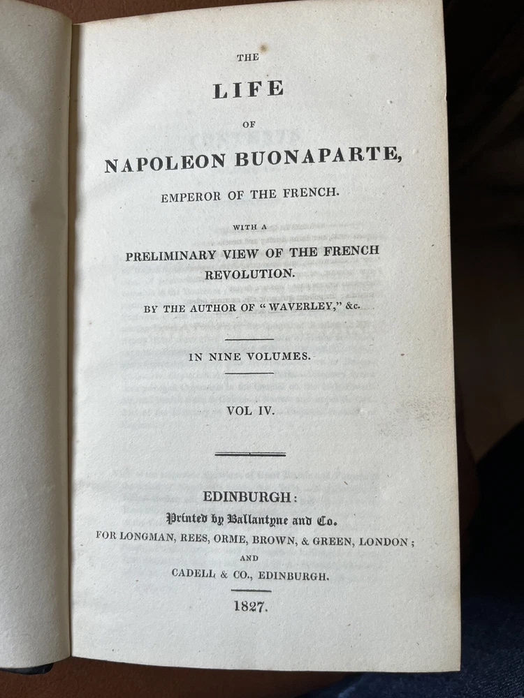 This rare and collectible book, titled "Scott, THE LIFE OF NAPOLEON BUONAPARTE EMPEROR OF THE FRENCH -1827", is a must-have for any history enthusiast. The books, bound in high-quality leather, was printed in Edinburgh, Scotland in 1827 by Longman, Rees, Orme, Brown, and Green. The author, Sir Walter Scott, provides a detailed account of Napoleon and his empire in this historical masterpiece. The book is an original printing and has not been modified. It is written in English and covers a range of topics related to French history. The book is perfect for collectors, antiquarians, and anyone interested in historical literature.