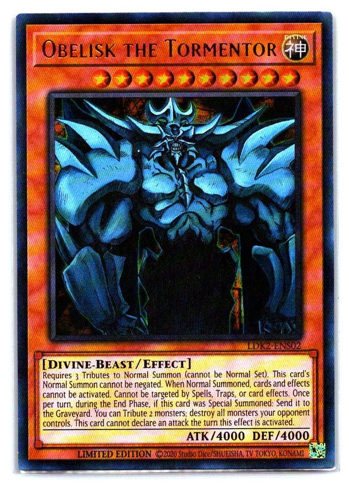 This is a nice example of a Legendary Decks II #LDK2-ENS02 Obelisk the Tormentor Other important information about this card: Ultra Rare In 2016 Obelisk the Tormentor played for the . Please check out our other listings for more great cards.
