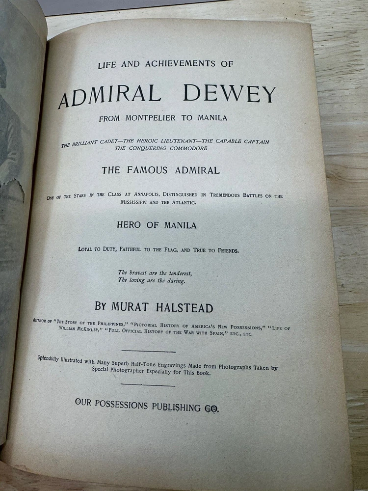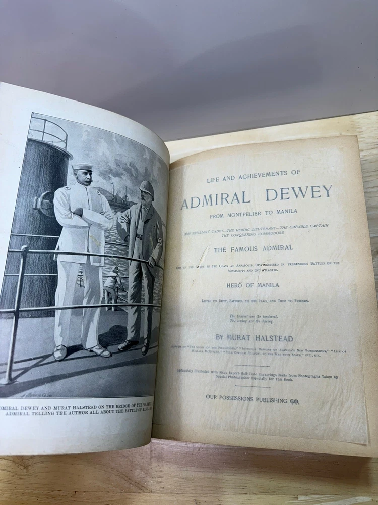 Life Achievements of Admiral Dewey, 1899 1st Book Hal stead Gift To Dewey from MontPelier to Manila. Antique Hard Cover...