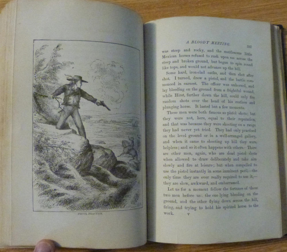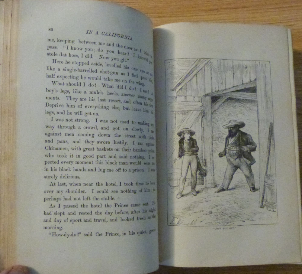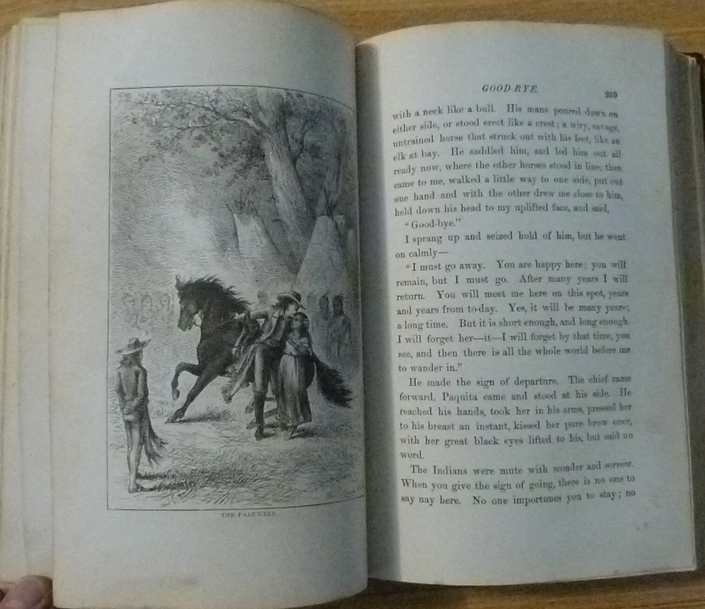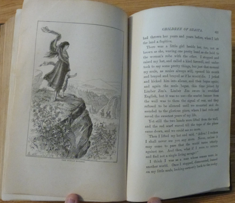 For sale, Unwritten History: Life Amongst The Modocs, written by Joaquin Miller, published by American Publishing, dated 1874, a first American edition. This is an autobiographical account of Joaquin Miller's account of his time among the gold mining camps and Modoc Indian villages of Northern California. This is a hardcover book with black leather covers with gold gilt writing and design on the front cover, 445 pages, illustrated through out. Condition of the book is fair, ex-library twice over. Originally belonged to the Henry Brune private library, then to a Marin county public library. Covers show moderate plus to heavy wear to the covers, moderate plus edge/corner bumping. Some library markings at the bottom of the spine cover, inside of front cover, title page. Front hinge is cracked and has been re-enforced with white hinge tape at the title page. Rear hinge is a little sloppy but still connected. Binding is tight. There is some yellowed scotch tape residue on the first blank page as well as the last blank page at the rear. A few of the pages have very small edge tears. Buyer pays $6.85 USPS media mail domestic shipping. International shipping available through the ebay international shipping program. Payment is through the ebay managed payment system. Please email me if you have any questions. Thanks for looking.