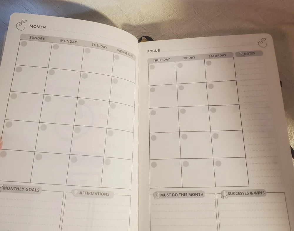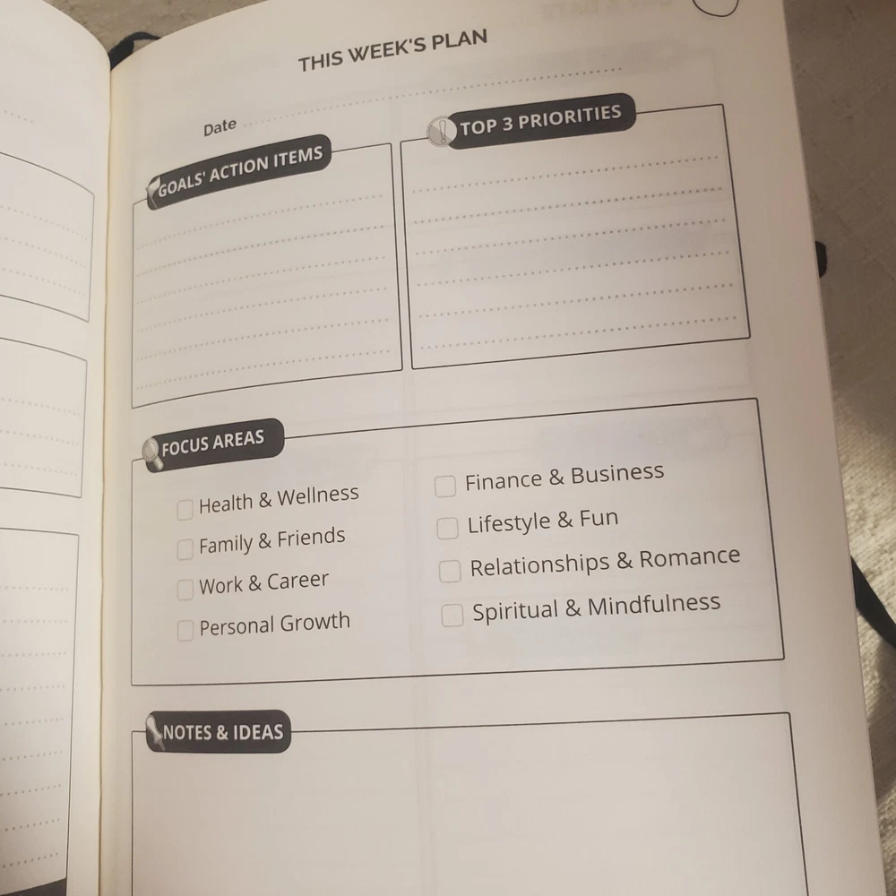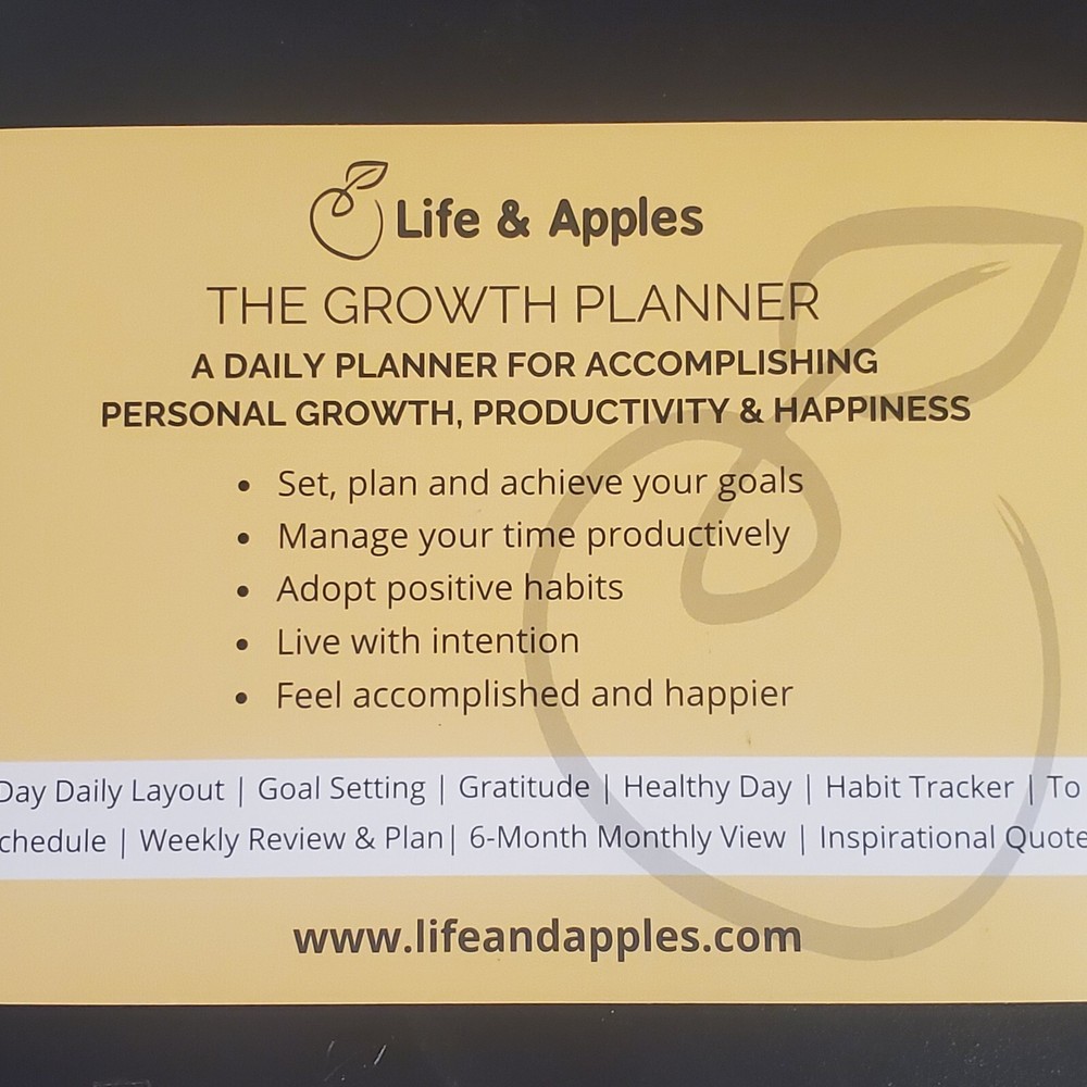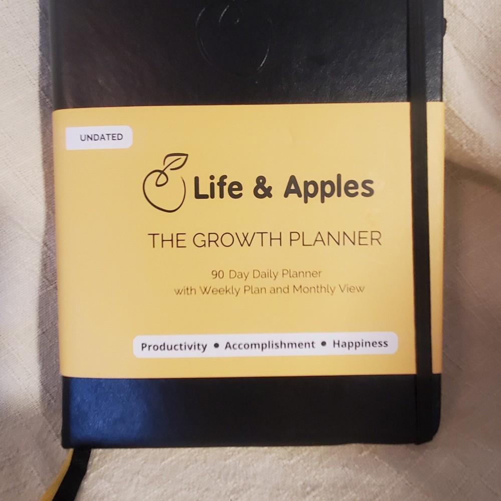 This Life & Apples planner is the perfect companion for anyone looking for daily motivation and organization. The leather-bound journal is filled with blank pages that provide ample space for notes, sketches, or anything else that comes to mind. Its medium size makes it easy to carry around, while the undated calendar year allows for flexible planning. The planner is ideal for those who appreciate quality materials and a minimalist design. The brand, Life & Apples, is known for its simple yet elegant products that help people stay organized and inspired. This planner is suitable for a variety of uses, from personal planning to professional goal setting. Get your hands on this planner today and start mapping out your days with ease. Life and Apples Undated Growth Planner, 90 day daily planneer with Weekly Planning and Monthly view. Great for goal setting, gratitude, health and habit tracker, to do schedule, and so much more. Includes sticker sheet