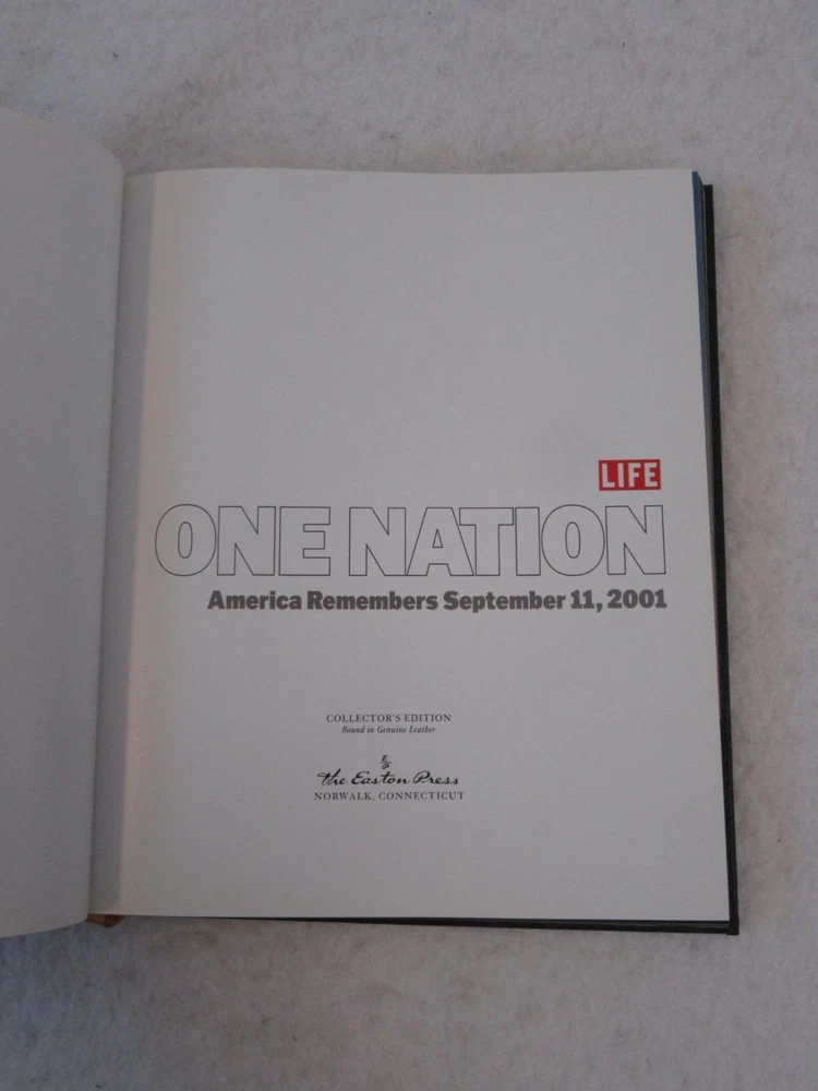Life ONE NATION America Remembers September 11, 2001 Easton Press Leather 1stEd Small scrape to front cover but in excellent overall condition, appears unread. Please examine photos for details. Condition: We strive to describe and photograph the condition of every item as accurately as possible. Photos are of the actual item that is being sold. Please examine the photos carefully for any condition details and possible flaws. Best Offers: We consider all offers in relation to current market values. We try to respond almost immediately to most offers. Most of our counteroffers are firm but we are open to bargaining. Shipping: We combine shipping. When ordering multiple items from us please request a total before paying. We charge postage based on weight plus $1 for each eBay listing. All of our orders are packed carefully to prevent damage during shipment. We ship most of our items within 24 hours. Contact Us: We are available 7 days a week and are happy to answer any questions you may have. The complete eBay Selling Solution.