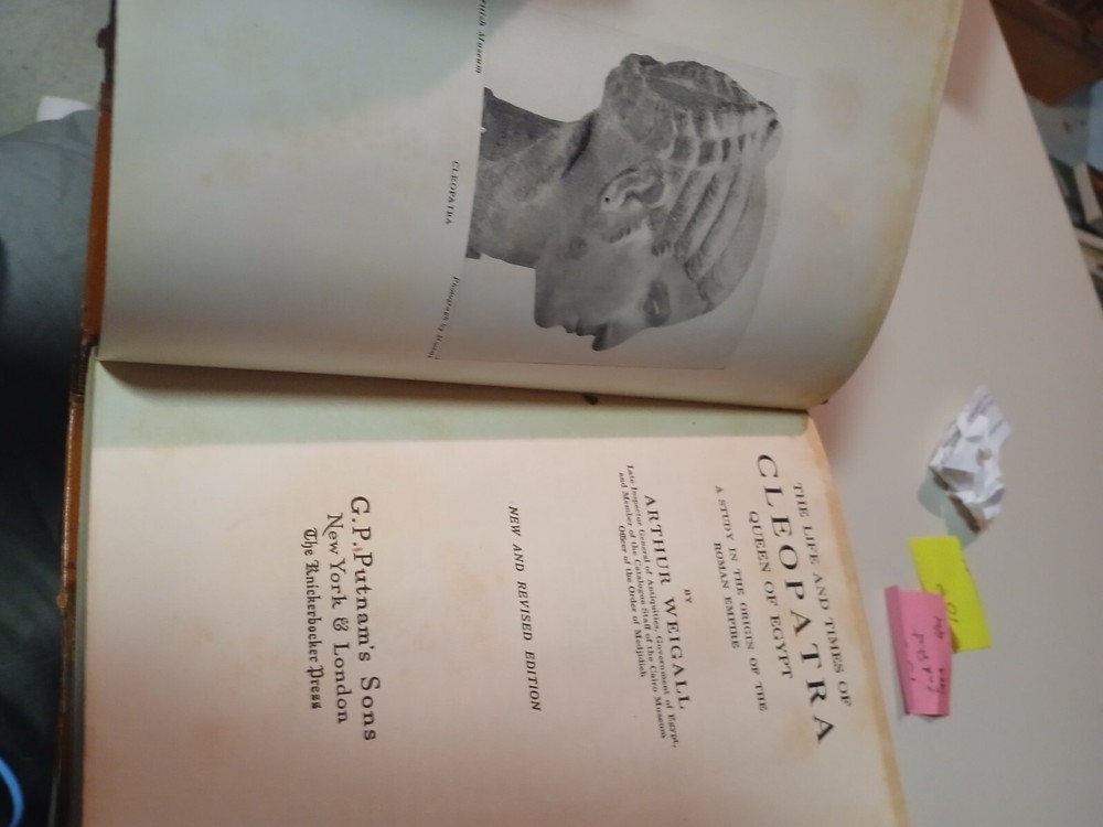 The LIfe and Times of Cleopatra was written by Arthur Weigall and published in 1926 by Putnam. Large print edition bound in 3/4 leather with marble boards. Pretty book This week 75 new listings fresh from a book hunt thru Ohio, Indiana and Illinois Grab up those First editions of Hemingway, Fitzgerald, L Frank Baum, Edith Wharton and many other classic authors. Plus 200 older listings of classic literature, history and Biography. Books collecting dust need a home, and ready to make a DEAL TODAY! MORE YOU BUY THE MORE YOU SAVE TODAY!!!