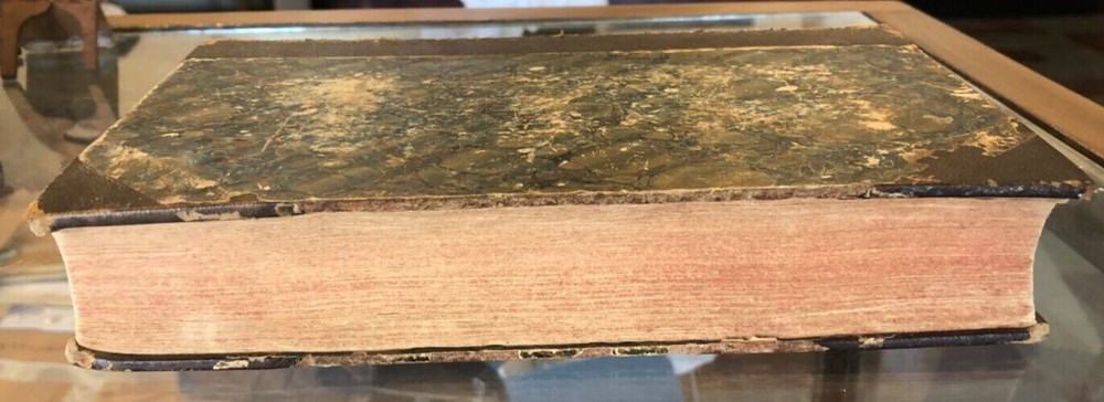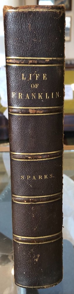 The Life of Benjamin Franklin containing The Autobiography, with Notes and a Continuation by Jared Sparks. Boston: Tappan, Whittemore, and Mason, 1850. Foxing on the pages with drawings. Front cover is worn and becoming detached from the binding.