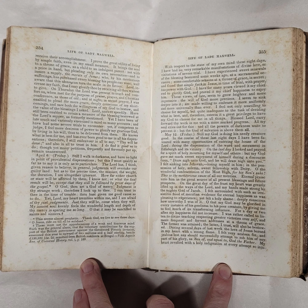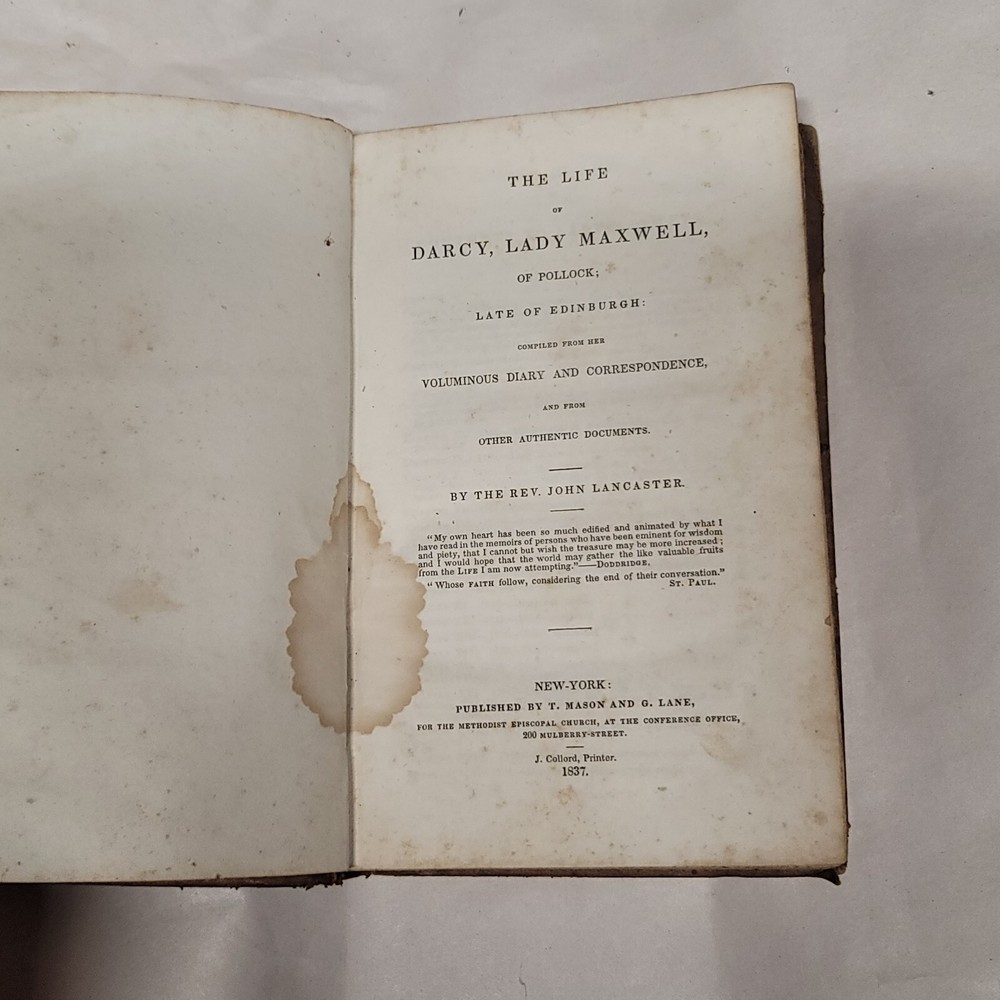 Book entitled: Life of Darcy Lady Maxwell of Pollock written by Reverend John Lancaster dated 1837 leatherbound book.