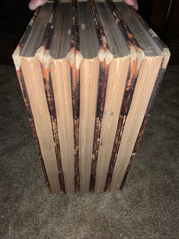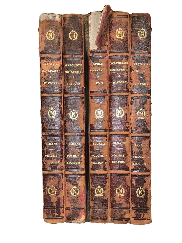 Life of Napoleon Bonaparte by Sloane 1896 5 volumes. Leather bound, previous owners bookplates on end cover, Library of Congress stamp on end pages. 12 1/4x8 1/2x1”. Worn leather on edges and spine. Some yellowing on pages. Vol. 1 section 2 tight covers, Vol. 2 section 1 loose front cover, half attached spine cover, Vol. 2 section 2 tight covers, creased front end page, Vol. 3 section 1 slightly loose front cover, half attached spine cover, Vol. 3 section 2 slightly loose front cover, half attached spine cover Please look at all pictures and ask any questions before purchasing. I can combine shipping orders, I ship with recycled materials, but pack carefully to assure your products safe arrival. Follow my store for many more great books and deals! If you plan on buying multiple books please wait for invoice so i can combine shipping. Thanks for looking! Inventory #floorb