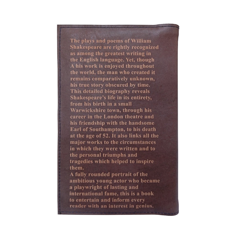 Books, as much as experiences, change my life, and I decided to make a limited collection of all the books I read and loved. And maybe you also will find in my collection a book that you enjoyed, and it even might have influenced your life. The book is a soft cover which I recycle and transform into a limited edition, personalized hardback with leather cover, designed and made by me. First, I prepare the book by embedding cotton cords into the spine. Adding 2 mm wood boards to the front and back. And reinforcing everything with cloth. To make the cover I use grade A, naturally tanned hide, I buy from a tannery in north Spain. It is the same leather Louis Vuitton uses to make his bags, so it is top quality. I do all the processing of the leather myself. First I design the cover and what I did here I used a portrait painting of Shakespeare. Next, I mix leather inks, and screen them on the surface of the leather. The inks are partly absorbed by the skin to create a permanent bond. Finally, I coat the leather with protective solution. The leather gives the image a vintage look and beautiful texture, and it will age nicely with time. Inside the front cover. I can print a personal message or a quote from the book. The book is beautiful. Visually it has a very nice texture, it smells great, and the more you handle it the more beautiful it will become. And it makes a great gift for yourself, or somebody who appreciates books. So if you want one, don’t snooze, or you might lose. I will make a total of 100 editions. Each one will be initialed by me and numbered. The numbers will go in chronological order from 2 up, since number 1 stays with me. Book - Life of William Shakespeare by Sir Sidney Lee Size - 8 x 5.5 inches (21 x 13.5 cm). Edition - 11 of 100, initialed and numbered. If you are interested in a different title, send me a message and I will give you a quote. You can see the video of how I make the book cover in the link below https://youtu.be/WUC2lGlsgGE If you would like to hear my review of this title, you can find it in the following link https://youtu.be/Frdb8at7XVU Returns: This is a custom-made item, so returns or exchanges are not accepted. But you can contact me if there is any problem with your order. Colors: Since I make each item to order, the color might vary from the pictures. It depends on how the inks mix and how they react with leather. Shipping: I make each item to order, and it takes a few weeks, since I need to find the book first. I go to the post office once a week. Estimated delivery time is about two weeks, but it depends on the postal service and customs. And occasionally there are delays, and it might take a month or so to arrive.