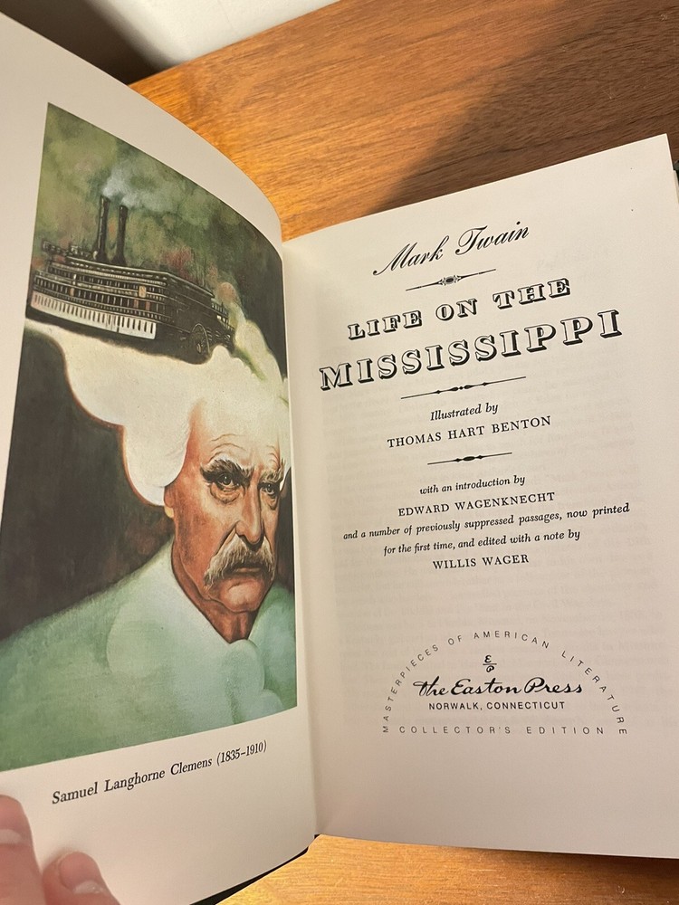 Perfect condition just little spot of wear on top of book. Experience the thrill of adventure with this leather bound book, Life on the Mississippi by Mark Twain. Immerse yourself in the captivating journey of the author as he navigates the mighty river. This book is a collectible treasure published by Easton Press, perfect for any book-lover's collection. With its English language and literature & fiction subject, this book is sure to keep you on the edge of your seat. Get lost in the action and adventure of this timeless classic.