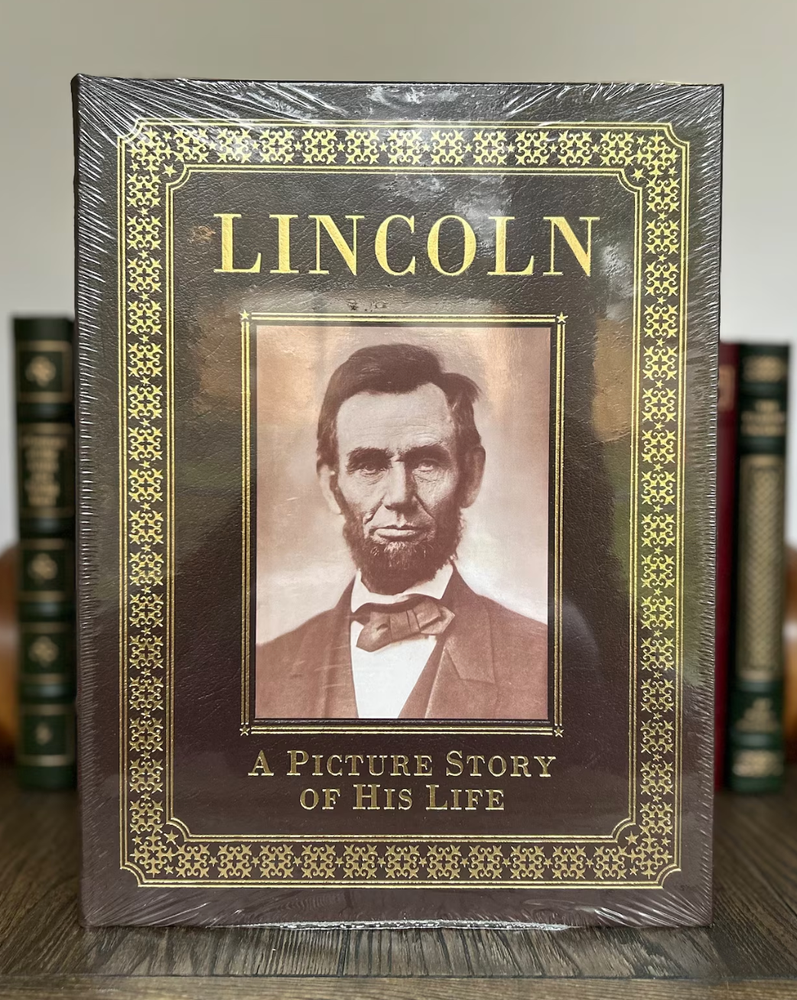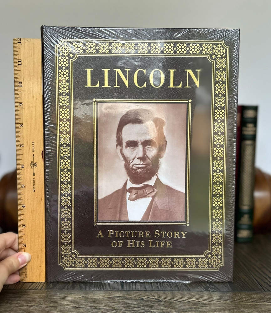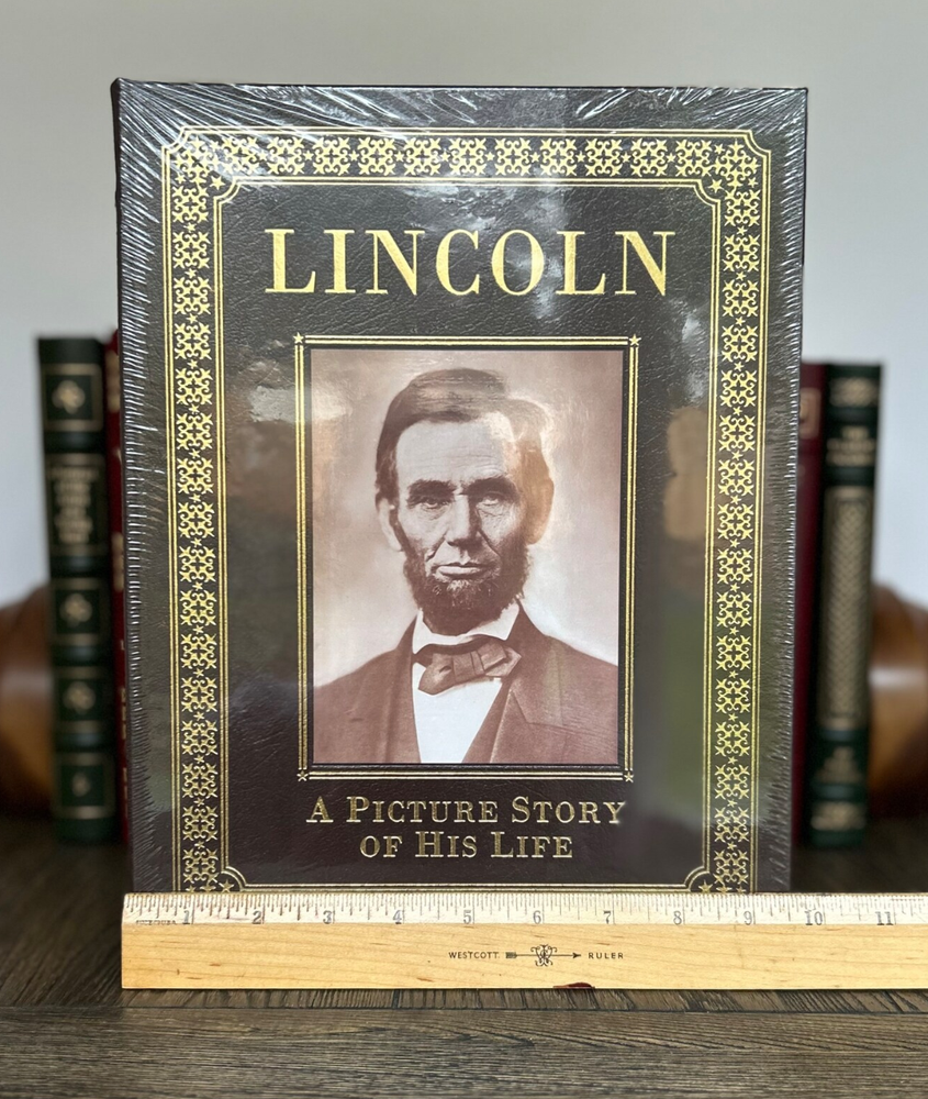 This listing features one book published by Easton Press: Lincoln - A Picture Story of His Life, authored by Stefan Lorant. Easton Press adorns the spines of their books with 22K gold lettering, and designs beautiful filigree patterns to grace the front cover. This book is a sealed edition.