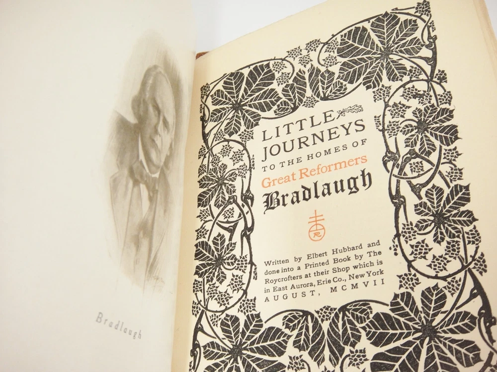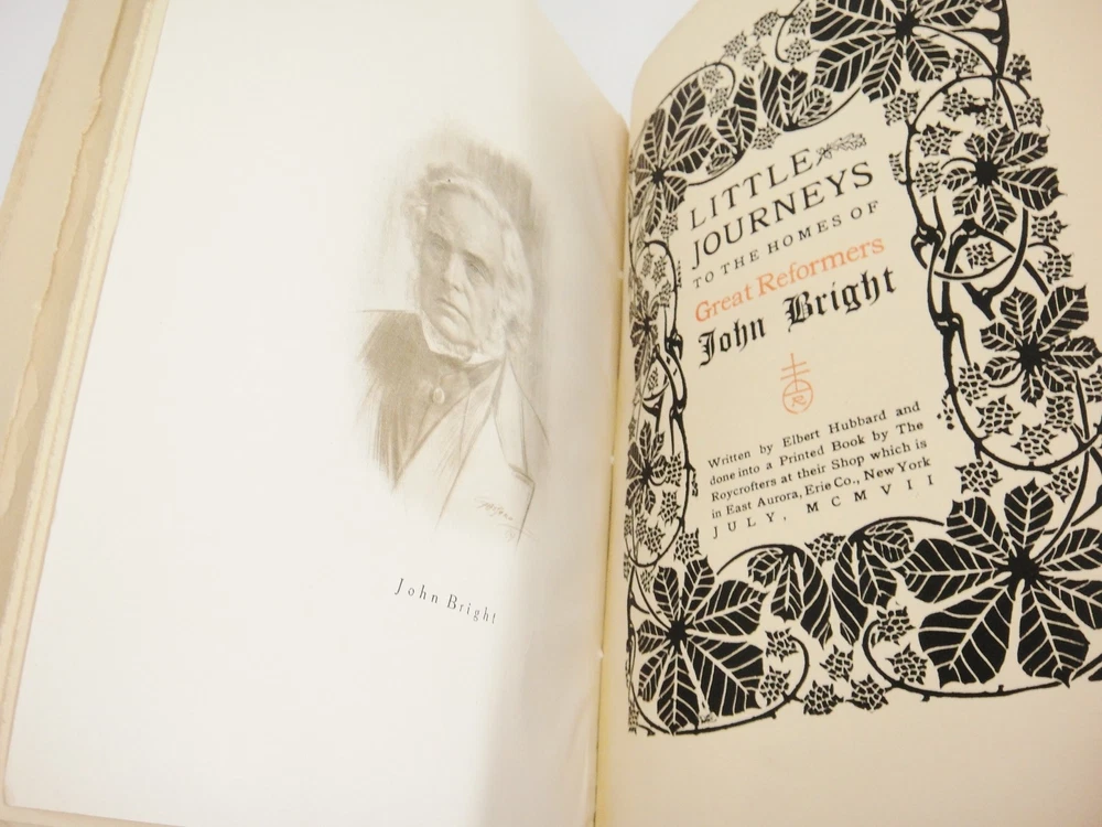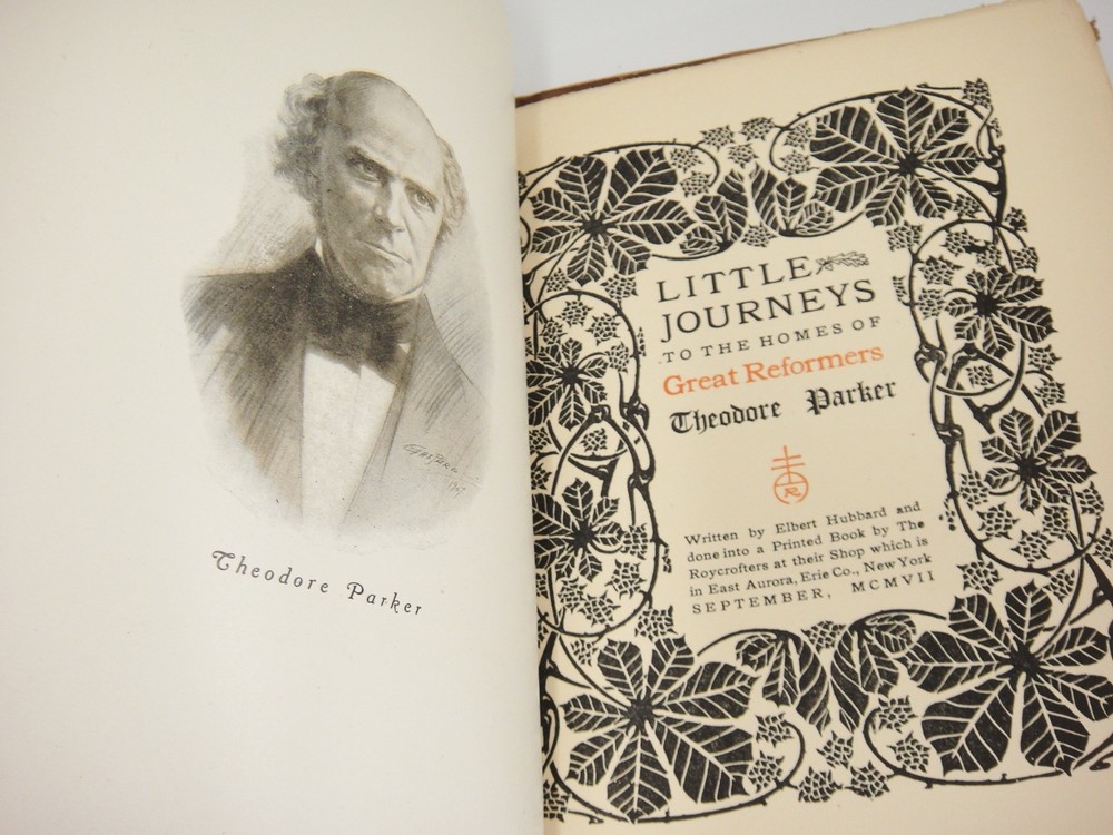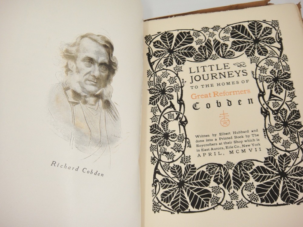 LITTLE JOURNEYS TO THE HOMES OF GREAT REFORMERS Items are packed with care 1907 There are five volumes bound in a buckskin cover Volumes include: Henry George Richard Cobden Theodore Parker Bradlaugh John Bright Rare, unusual copy Tears on edges and spine of leather/buckskin cover; pages are clean and free of writing From non-smoking environment