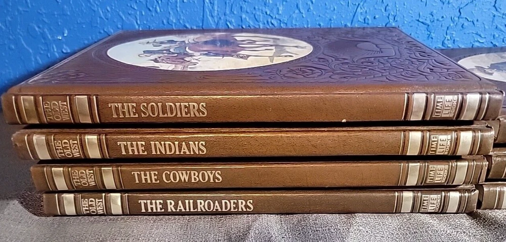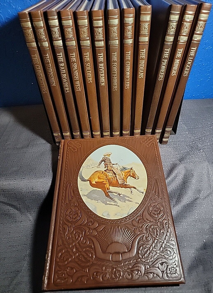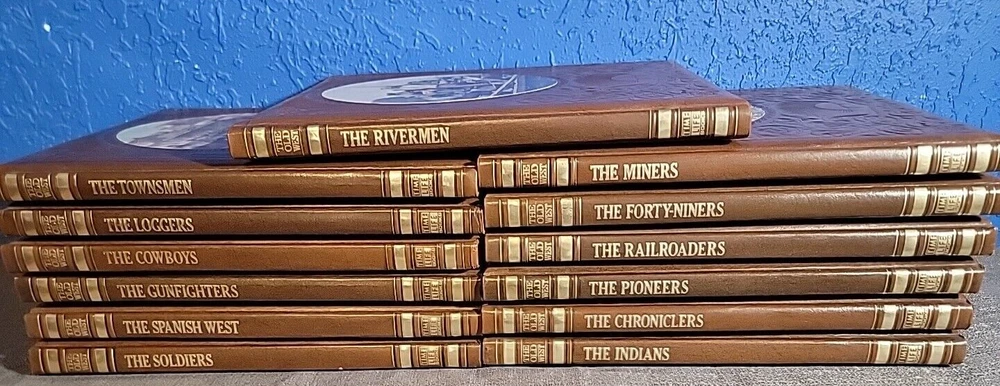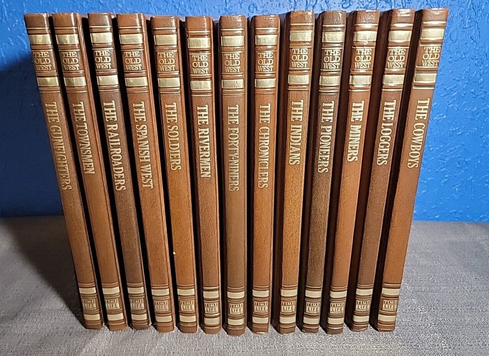 Lot of 13 Books from Time-Life Books "The Old West Series". Includes: The Indians,The Cowboys, The Soldiers, The Loggers, The Miners, The Spanish West, The Chroniclers, The Townsmen, The Rivermen, The Gunfighters, The Pioneers, The Forty-Niners, and The Railroaders. The books are beautifully illustrated and bound in faux leather. Published in 1973 to 1976. Offering a captivating and realistic portrayal of the region's history through vivid illustrations and informative narratives. They are in excellent condition. No Writing or torn pages. See pictures for more details. Standard Shipping. Please feel free to ask questions. Thanks for looking!