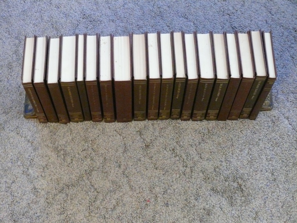 There is missing Gold leaf on some of the spines and there is shelf wear. Otherwise very good condition. See photos for titles.