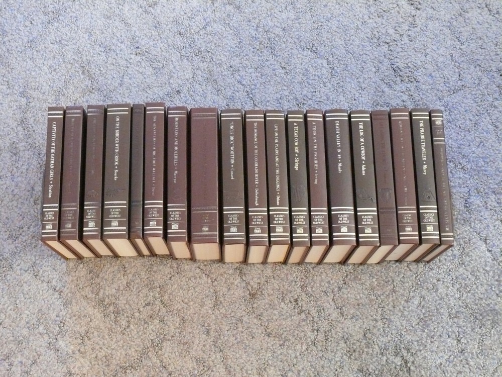 There is missing Gold leaf on some of the spines and there is shelf wear. Otherwise very good condition. See photos for titles....