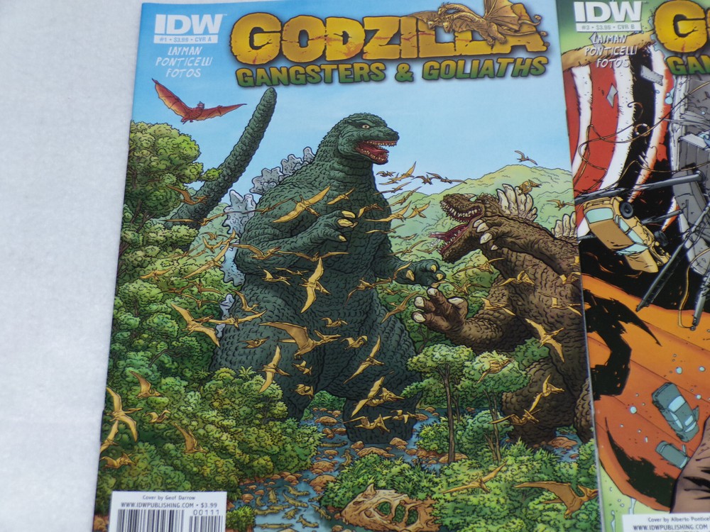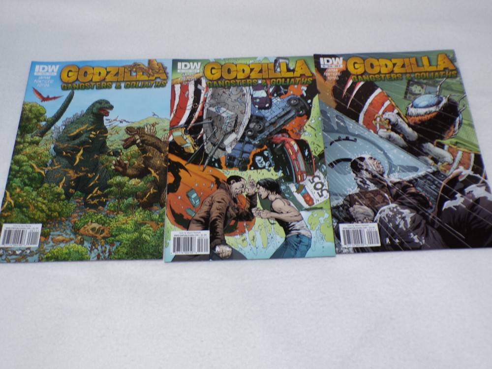 Auction find A vintage comic book that we acquired at auction. This comic book is titled: Godzilla, Gangsters & Goliaths 1-3 Comic Book Publisher: IDW Comics **We us the chart below for grading ** Condition/Grade: VF NM , Near Mint=Like New. You really have to look close to find any flaws at all. Might have one tiny color flake, or other very minor blemish. VF/NM , Very Fine to Near Mint=nearly perfect, but when you look close, there is a tiny flaw or two that keep it from near mint. VF , Very Fine=Almost like new with just a couple of tiny, barely noticeable flaws. One or two small color flakes along the spine are acceptable, but no folds or tears. F , Fine=A nice looking comic. Still glossy and handsome, but has some noticeable flaws such as several color flakes along the spine.The cover should still be firmly attached at the staples. VG , Very Good=A decent looking comic that is showing more heavy wear. May have subscription crease down the middle. May have a loose staple. G , Good=Well Worn, but still sound. Generally the lowest grade that most collectors will accept for most books. Could be soiled, lack color gloss or have tape on it. Some drawing on cover is acceptable in this grade. FA , Fair=Really beat. Can have large chunks missing, a completely split cover, or coupons cut out. Cover may be scribbled on. P , Poor=Just about as bad as you can get. A rag with missing pages, could be coverless or barely there. The majority of what we sell are items that were bought at various estate auctions. Therefore unless otherwise noted in the description, if the item is listed as an auction find it is being offered in “as is” condition. Due to USPS price increases we reserve the right, especially with large or heavy items, to switch shipping carriers to UPS or Fed Ex, as needed. We do not ship to the Russian Federation. COMBINED SHIPPING ACCEPTED, in most cases it will be the actual cost subtracted from the total shipping charges. WE USE EBAY'S AUTOMATED UNPAID ITEM ASSISTANT.